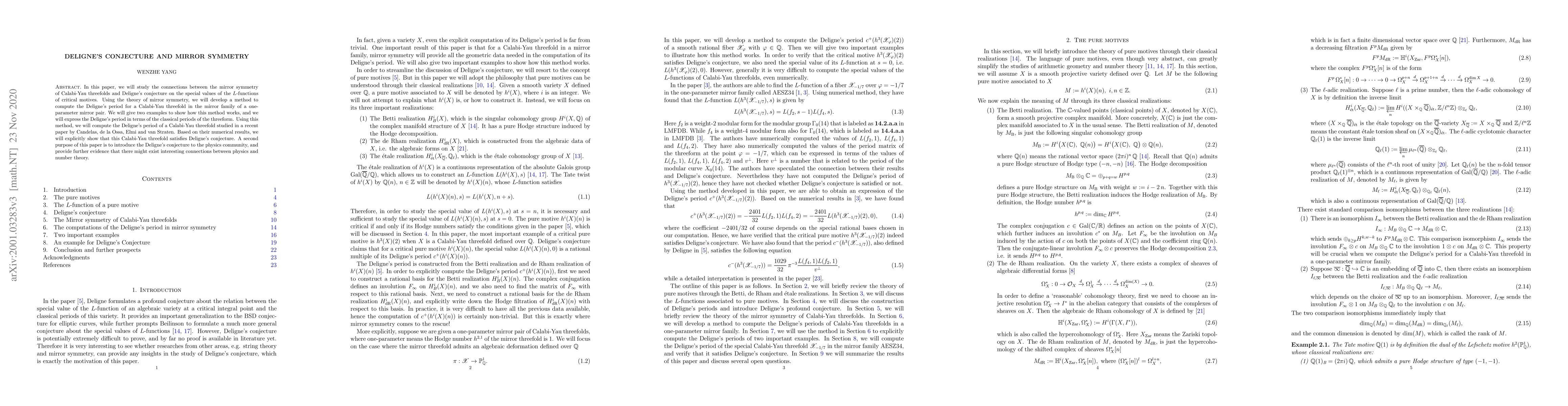 This paper explores the link between mirror symmetry in Calabi-Yau threefolds and Deligne's conjecture on the $L$-functions of critical motives, developing a method to compute Deligne's period, and demonstrating its application to confirm Deligne's conjecture for a specific Calabi-Yau threefold, thus highlighting potential connections between physics and number theory.