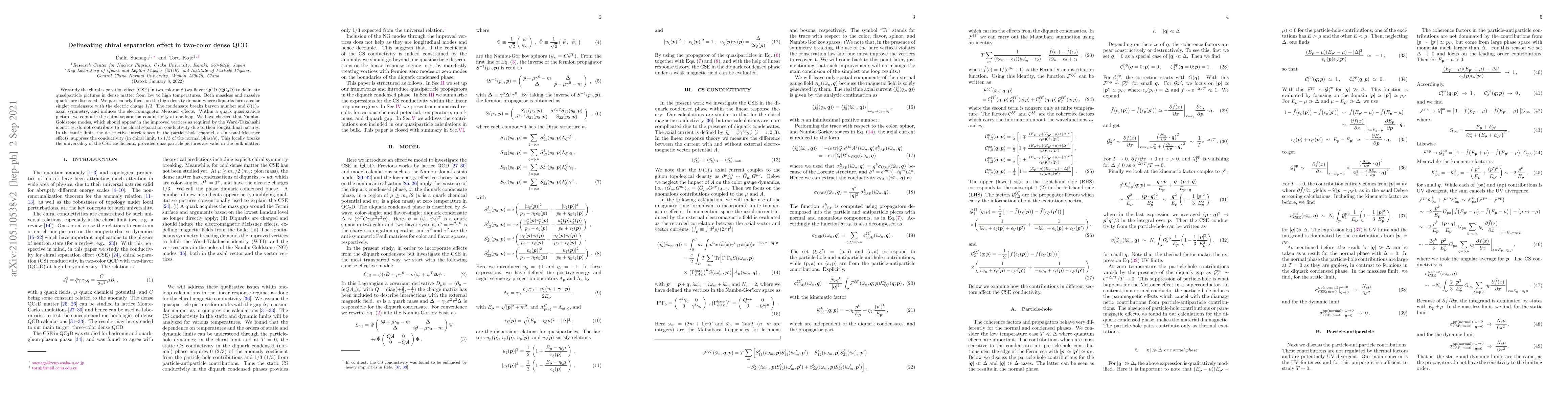 We study the chiral separation effect (CSE) in two-color and two-flavor QCD (QC$_2$D) to delineate quasiparticle pictures in dense matter from low to high temperatures. Both massless and massive quarks are discussed. We particularly focus on the high density domain where diquarks form a color singlet condensate with the electric charge $1/3$. The condensate breaks baryon number and $U(1)_A$ axial symmetry, and induces the electromagnetic Meissner effects. Within a quark quasiparticle picture, we compute the chiral separation conductivity at one-loop. We have checked that Nambu-Goldstone modes, which should appear in the improved vertices as required by the Ward-Takahashi identities, do not contribute to the chiral separation conductivity due to their longitudinal natures. In the static limit, the destructive interferences in the particle-hole channel, as in usual Meissner effects, suppress the conductivity (in chiral limit, to $1/3$ of the normal phase's). This locally breaks the universality of the CSE coefficients, provided quasiparticle pictures are valid in the bulk matter.