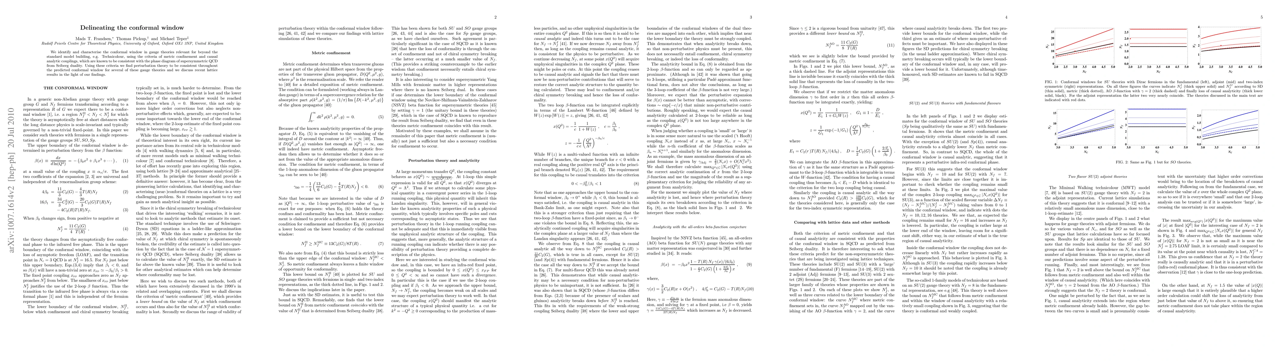 This paper identifies and characterizes the conformal window in gauge theories beyond the Standard Model, employing metric confinement and causal analytic couplings. It finds perturbation theory consistent within the predicted conformal window for several gauge theories and discusses recent lattice results in this context.