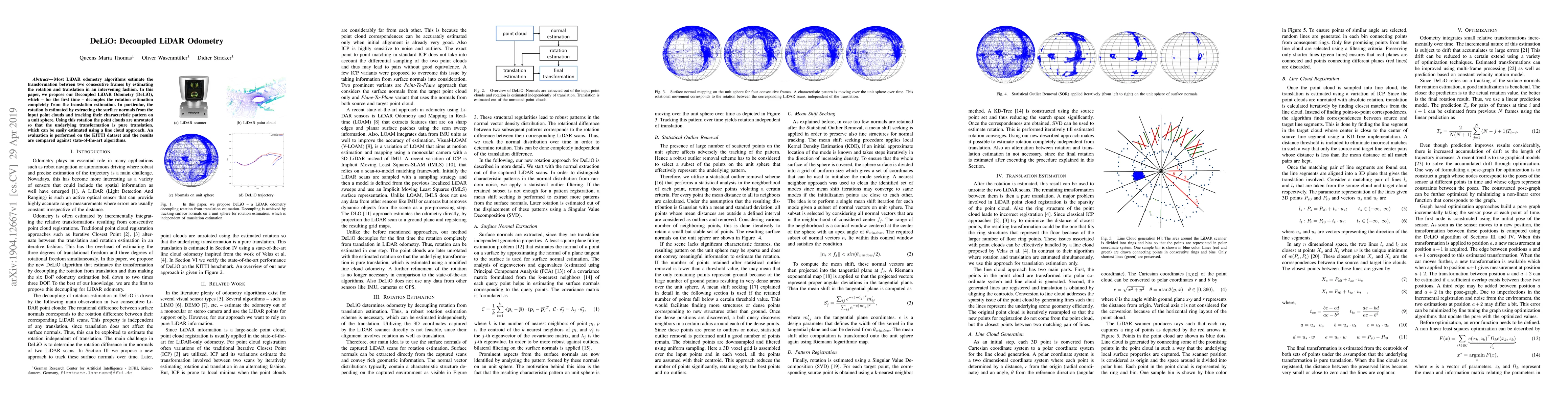 Most LiDAR odometry algorithms estimate the transformation between two consecutive frames by estimating the rotation and translation in an intervening fashion. In this paper, we propose our Decoupled LiDAR Odometry (DeLiO), which -- for the first time -- decouples the rotation estimation completely from the translation estimation. In particular, the rotation is estimated by extracting the surface normals from the input point clouds and tracking their characteristic pattern on a unit sphere. Using this rotation the point clouds are unrotated so that the underlying transformation is pure translation, which can be easily estimated using a line cloud approach. An evaluation is performed on the KITTI dataset and the results are compared against state-of-the-art algorithms.