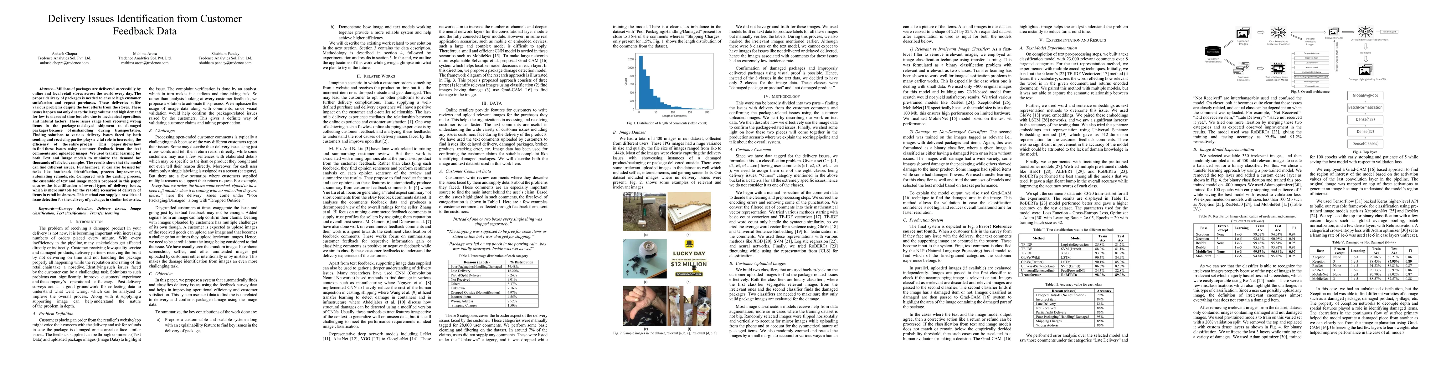 This paper proposes a method to identify delivery issues from customer feedback data using text and image models, improving efficiency in package delivery processes.