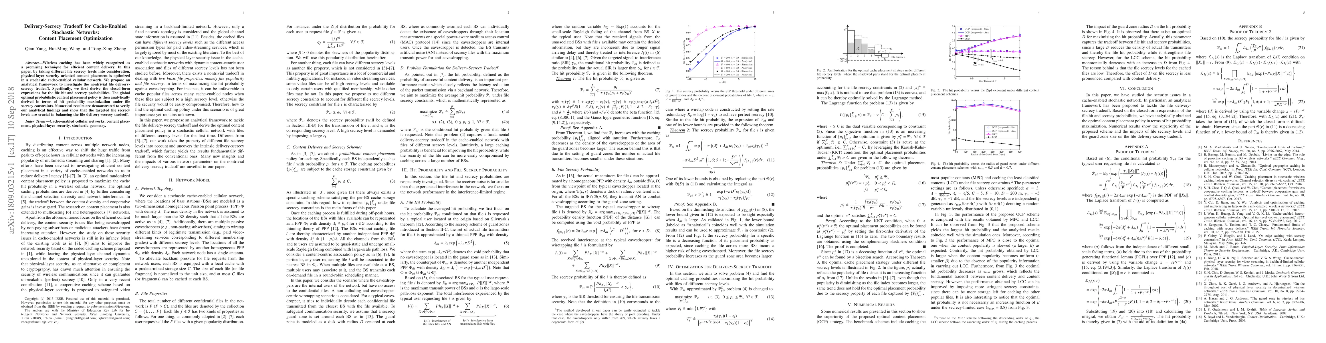 Wireless caching has been widely recognized as a promising technique for efficient content delivery. In this paper, by taking different file secrecy levels into consideration, physical-layer security oriented content placement is optimized in a stochastic cache-enabled cellular network. We propose an analytical framework to investigate the nontrivial file delivery-secrecy tradeoff. Specifically, we first derive the closed-form expressions for the file hit and secrecy probabilities. The global optimal probabilistic content placement policy is then analytically derived in terms of hit probability maximization under file secrecy constraints. Numerical results are demonstrated to verify our analytical findings and show that the targeted file secrecy levels are crucial in balancing the file delivery-secrecy tradeoff.