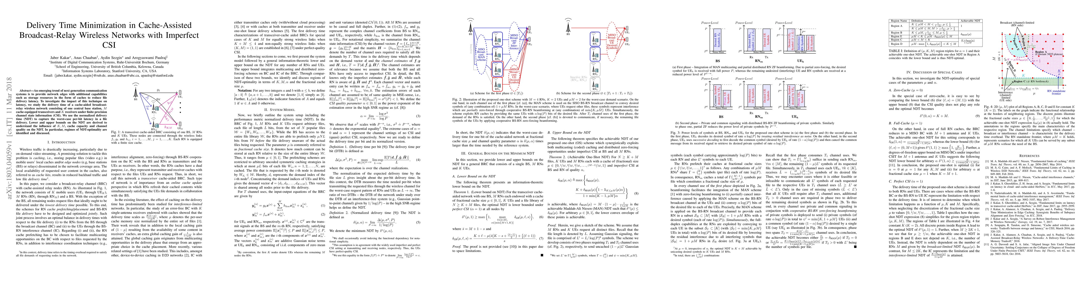 This paper investigates minimizing delivery time in cache-assisted broadcast-relay networks under imperfect channel state information (CSI). It derives bounds on normalized delivery time to understand the impact of cache capacity, number of transceivers, receivers, and channel quality on latency.
