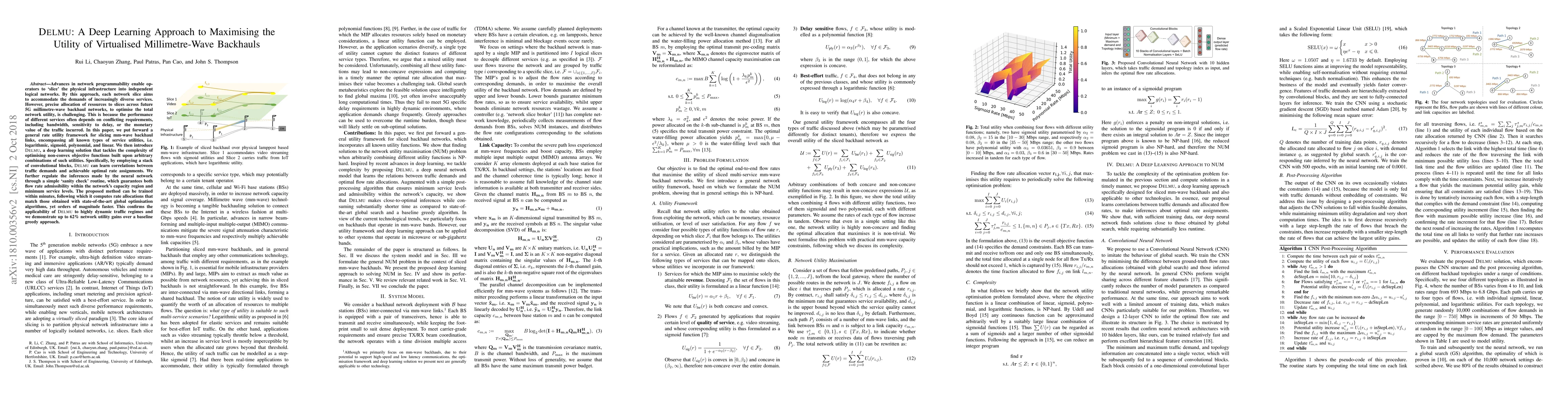 Advances in network programmability enable operators to 'slice' the physical infrastructure into independent logical networks. By this approach, each network slice aims to accommodate the demands of increasingly diverse services. However, precise allocation of resources to slices across future 5G millimetre-wave backhaul networks, to optimise the total network utility, is challenging. This is because the performance of different services often depends on conflicting requirements, including bandwidth, sensitivity to delay, or the monetary value of the traffic incurred. In this paper, we put forward a general rate utility framework for slicing mm-wave backhaul links, encompassing all known types of service utilities, i.e. logarithmic, sigmoid, polynomial, and linear. We then introduce DELMU, a deep learning solution that tackles the complexity of optimising non-convex objective functions built upon arbitrary combinations of such utilities. Specifically, by employing a stack of convolutional blocks, DELMU can learn correlations between traffic demands and achievable optimal rate assignments. We further regulate the inferences made by the neural network through a simple 'sanity check' routine, which guarantees both flow rate admissibility within the network's capacity region and minimum service levels. The proposed method can be trained within minutes, following which it computes rate allocations that match those obtained with state-of-the-art global optimisation algorithms, yet orders of magnitude faster. This confirms the applicability of DELMU to highly dynamic traffic regimes and we demonstrate up to 62% network utility gains over a baseline greedy approach.