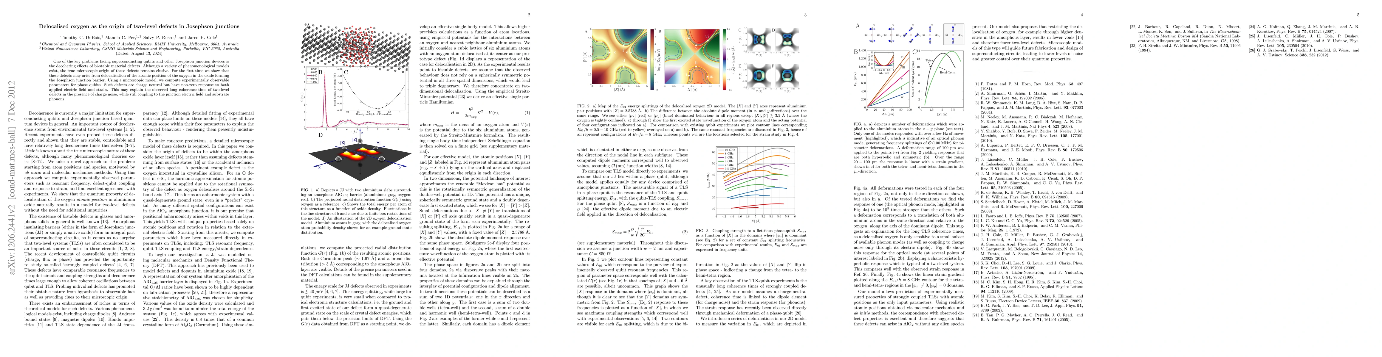 This paper identifies delocalised oxygen atoms in the oxide barrier of Josephson junctions as the origin of two-level defects, which cause decoherence in superconducting qubits. The study provides a microscopic model explaining how these defects, though charge neutral, respond to electric fields and strain, potentially explaining their long coherence times despite charge noise.