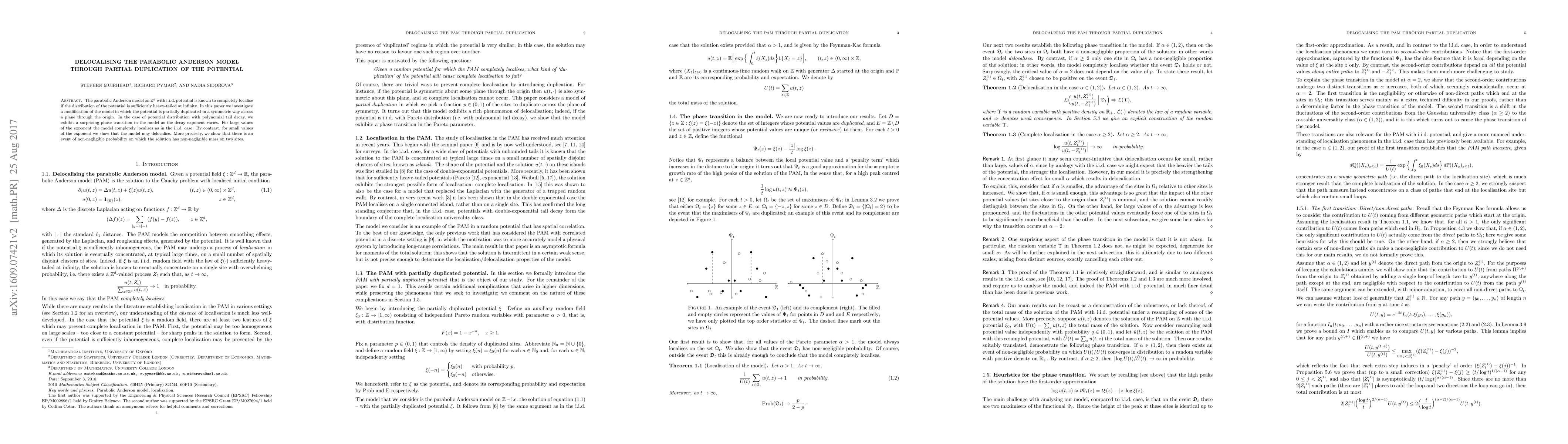 The parabolic Anderson model on $\mathbb{Z}^d$ with i.i.d. potential is known to completely localise if the distribution of the potential is sufficiently heavy-tailed at infinity. In this paper we investigate a modification of the model in which the potential is partially duplicated in a symmetric way across a plane through the origin. In the case of potential distribution with polynomial tail decay, we exhibit a surprising phase transition in the model as the decay exponent varies. For large values of the exponent the model completely localises as in the i.i.d. case. By contrast, for small values of the exponent we show that the model may delocalise. More precisely, we show that there is an event of non-negligible probability on which the solution has non-negligible mass on two sites.