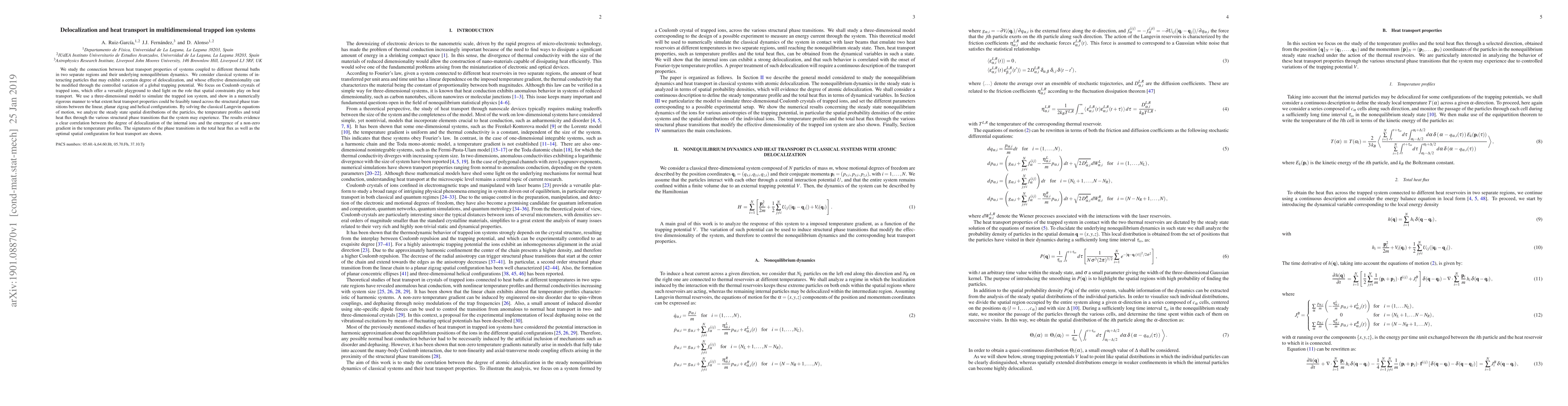 We study the connection between heat transport properties of systems coupled to different thermal baths in two separate regions and their underlying nonequilibrium dynamics. We consider classical systems of interacting particles that may exhibit a certain degree of delocalization, and whose effective dimensionality can be modified through the controlled variation of a global trapping potential. We focus on Coulomb crystals of trapped ions, which offer a versatile playground to shed light on the role that spatial constraints play on heat transport. We use a three-dimensional model to simulate the trapped ion system, and show in a numerically rigorous manner to what extent heat transport properties could be feasibly tuned across the structural phase transitions between the linear, planar zigzag and helical configurations. By solving the classical Langevin equations of motion, we analyze the steady state spatial distributions of the particles, the temperature profiles and total heat flux through the various structural phase transitions that the system may experience. The results evidence a clear correlation between the degree of delocalization of the internal ions and the emergence of a non-zero gradient in the temperature profiles. The signatures of the phase transitions in the total heat flux as well as the optimal spatial configuration for heat transport are shown.
