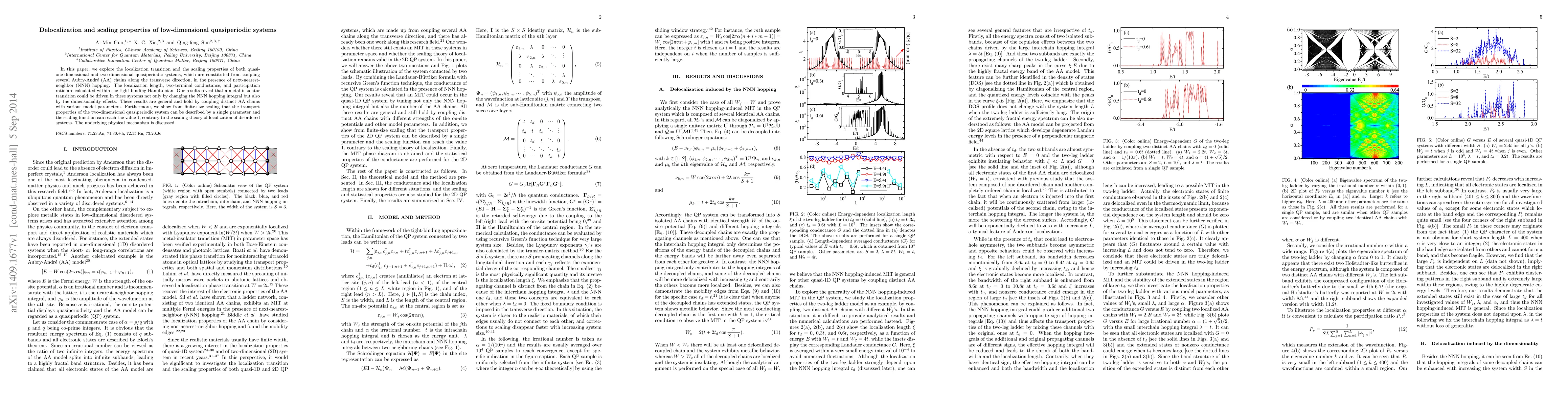In this paper, we explore the localization transition and the scaling properties of both quasi-one-dimensional and two-dimensional quasiperiodic systems, which are constituted from coupling several Aubry-Andr\'{e} (AA) chains along the transverse direction, in the presence of next-nearest-neighbor (NNN) hopping. The localization length, two-terminal conductance, and participation ratio are calculated within the tight-binding Hamiltonian. Our results reveal that a metal-insulator transition could be driven in these systems not only by changing the NNN hopping integral but also by the dimensionality effects. These results are general and hold by coupling distinct AA chains with various model parameters. Furthermore, we show from finite-size scaling that the transport properties of the two-dimensional quasiperiodic system can be described by a single parameter and the scaling function can reach the value 1, contrary to the scaling theory of localization of disordered systems. The underlying physical mechanism is discussed.