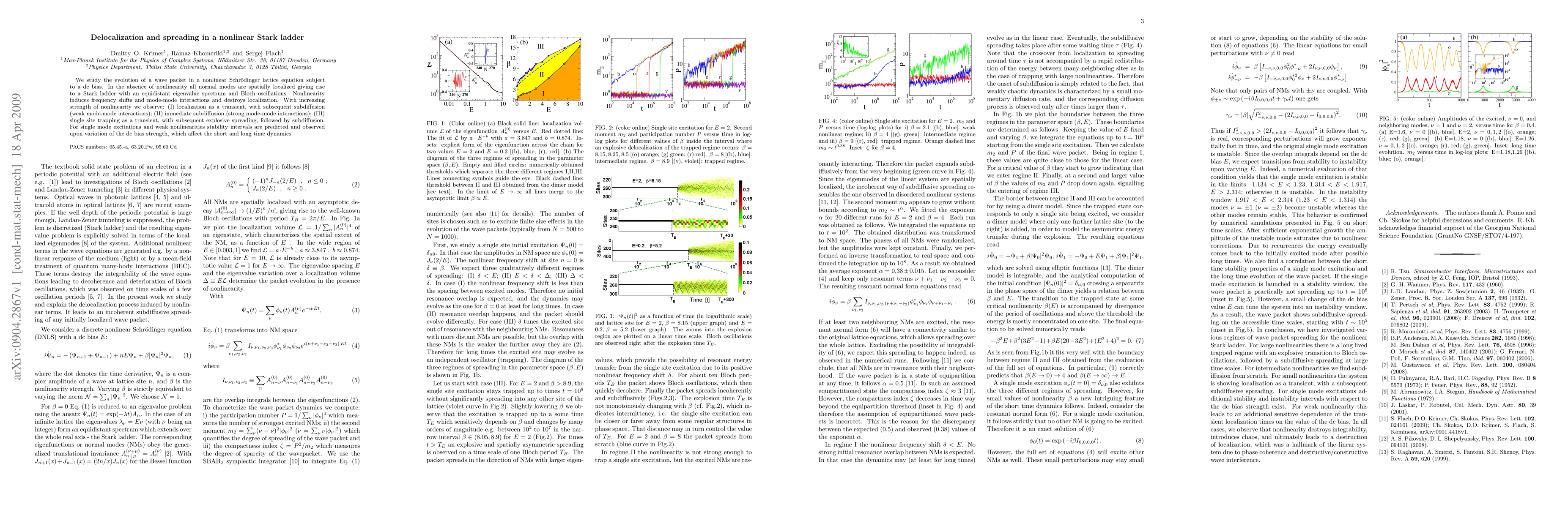 We study the evolution of a wave packet in a nonlinear Schr\"odinger lattice equation subject to a dc bias. In the absence of nonlinearity all normal modes are spatially localized giving rise to a Stark ladder with an equidistant eigenvalue spectrum and Bloch oscillations. Nonlinearity induces frequency shifts and mode-mode interactions and destroys localization. With increasing strength of nonlinearity we observe: (I) localization as a transient, with subsequent subdiffusion (weak mode-mode interactions); (II) immediate subdiffusion (strong mode-mode interactions); (III) single site trapping as a transient, with subsequent explosive spreading, followed by subdiffusion. For single mode excitations and weak nonlinearities stability intervals are predicted and observed upon variation of the dc bias strength, which affect the short and long time dynamics.