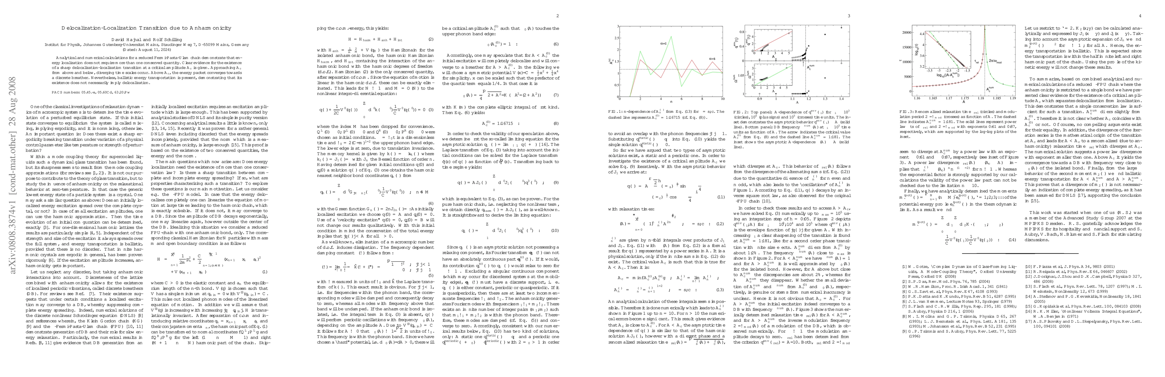 The study reveals a sharp delocalization-localization transition in a Fermi-Pasta-Ulam chain at a critical amplitude, with diverging time scales near the threshold. Despite energy localization, ballistic transport persists, indicating it does not equate to delocalization.