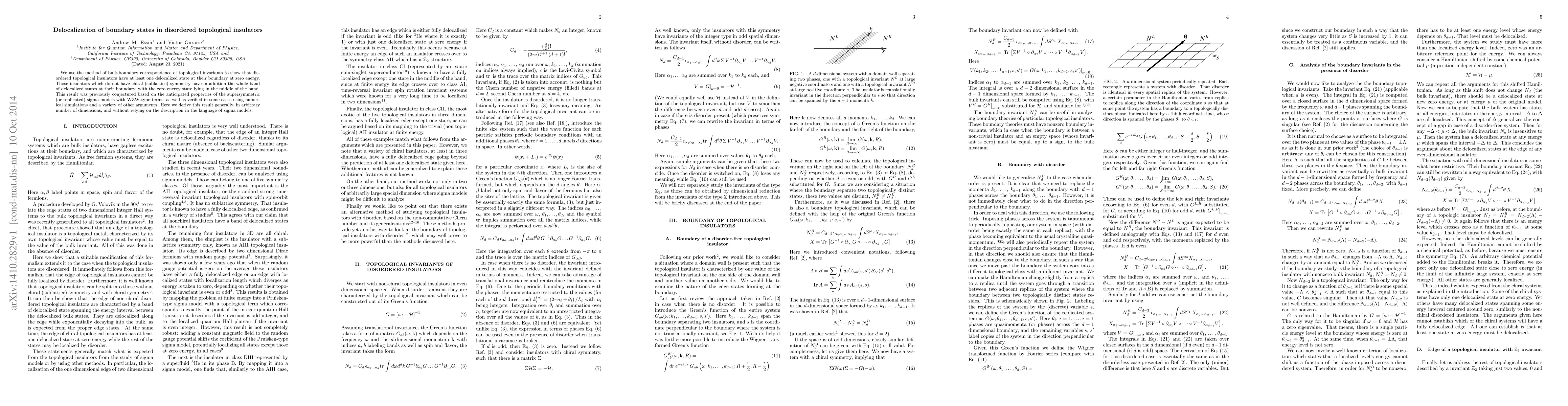 We use the method of bulk-boundary correspondence of topological invariants to show that disordered topological insulators have at least one delocalized state at their boundary at zero energy. Those insulators which do not have chiral (sublattice) symmetry have in addition the whole band of delocalized states at their boundary, with the zero energy state lying in the middle of the band. This result was previously conjectured based on the anticipated properties of the supersymmetric (or replicated) sigma models with WZW-type terms, as well as verified in some cases using numerical simulations and a variety of other arguments. Here we derive this result generally, in arbitrary number of dimensions, and without relying on the description in the language of sigma models.