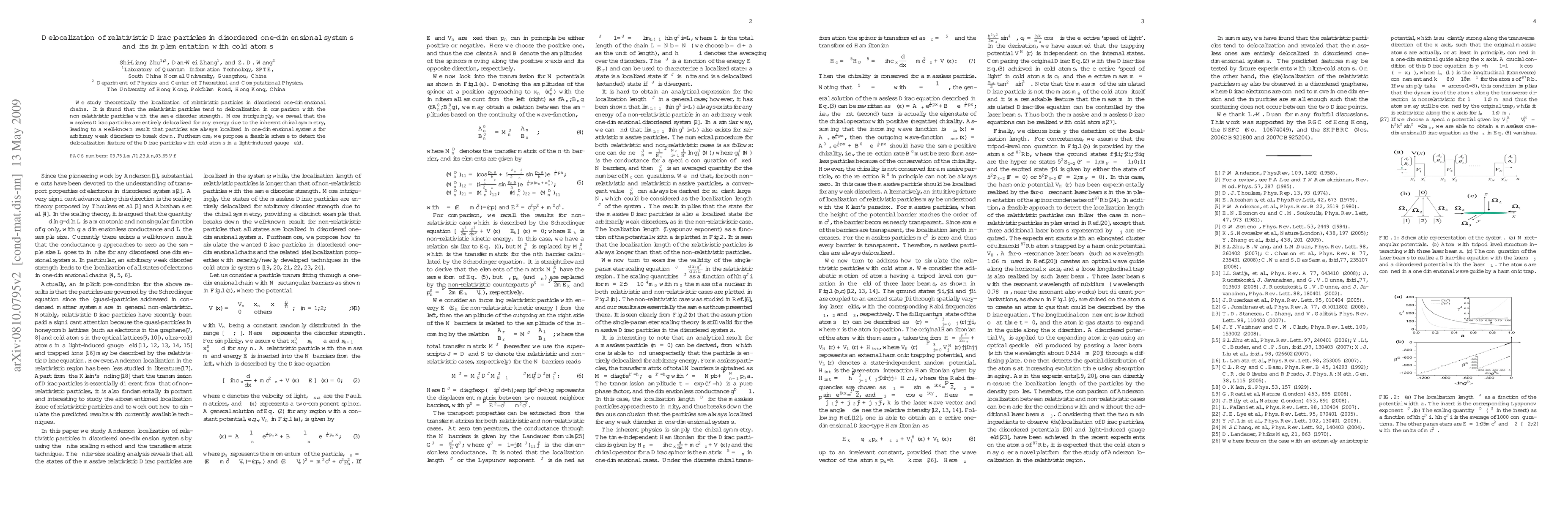 Theoretical study finds relativistic particles in disordered 1D systems are more delocalized than non-relativistic particles, with massless Dirac particles being fully delocalized due to their chiral symmetry.