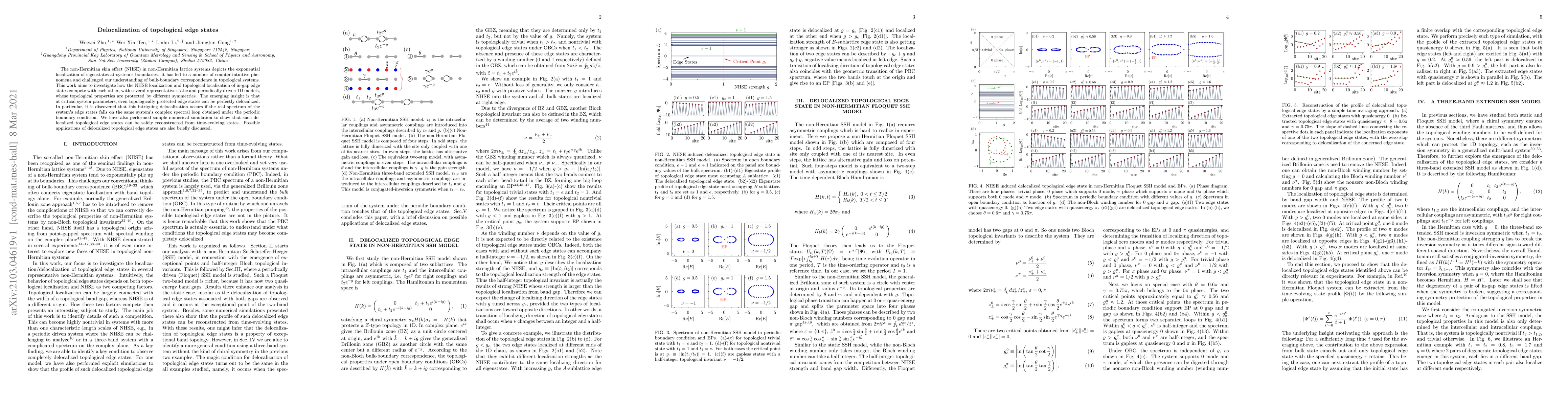Researchers investigate how non-Hermitian skin effect localization competes with topological edge state localization in 1D models, discovering that topologically protected states can become perfectly delocalized at critical system parameters. This phenomenon occurs when the real spectrum of edge states aligns with the complex spectral loop under periodic boundary conditions.