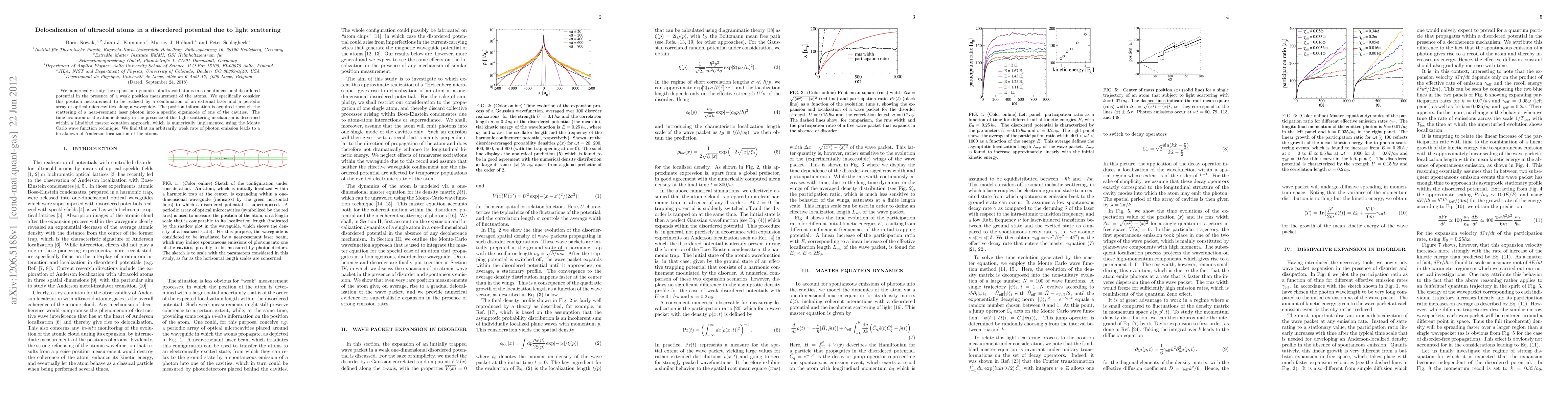 Title: Delocalization of ultracold atoms in a disordered potential due to light scattering Summary: This study investigates the dynamics of ultracold atoms in a one-dimensional disordered potential using a combination of light scattering and optical microcavities, finding that even weak photon emission can break Anderson localization. The results are derived using a Lindblad master equation and Monte Carlo wave function technique.