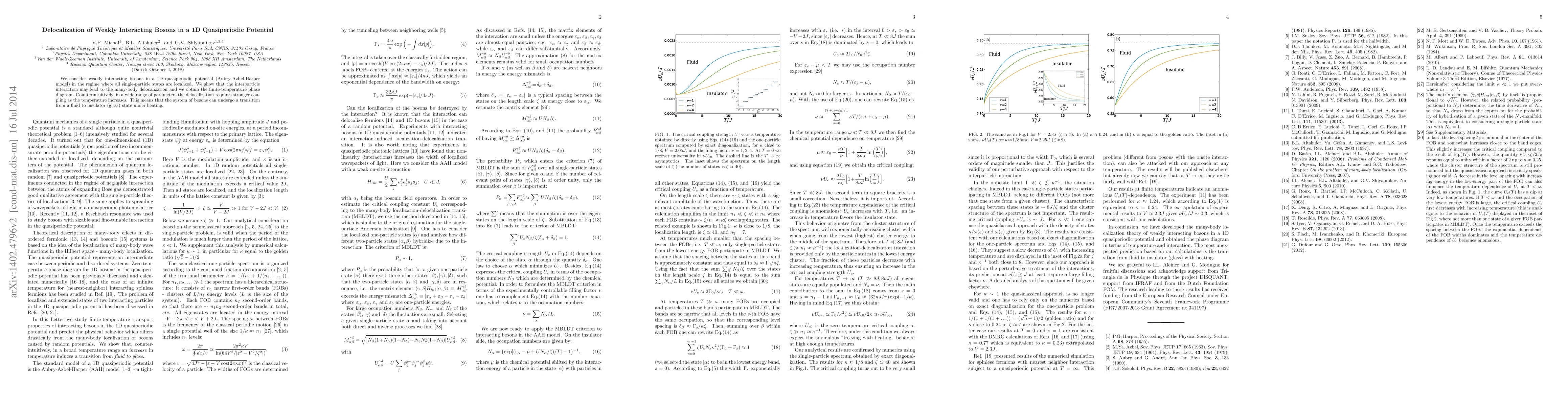 Researchers found that adding interactions to weakly interacting bosons in a 1D quasiperiodic potential can lead to delocalization at finite temperatures, contrary to intuition, and even requires stronger coupling as temperature increases.