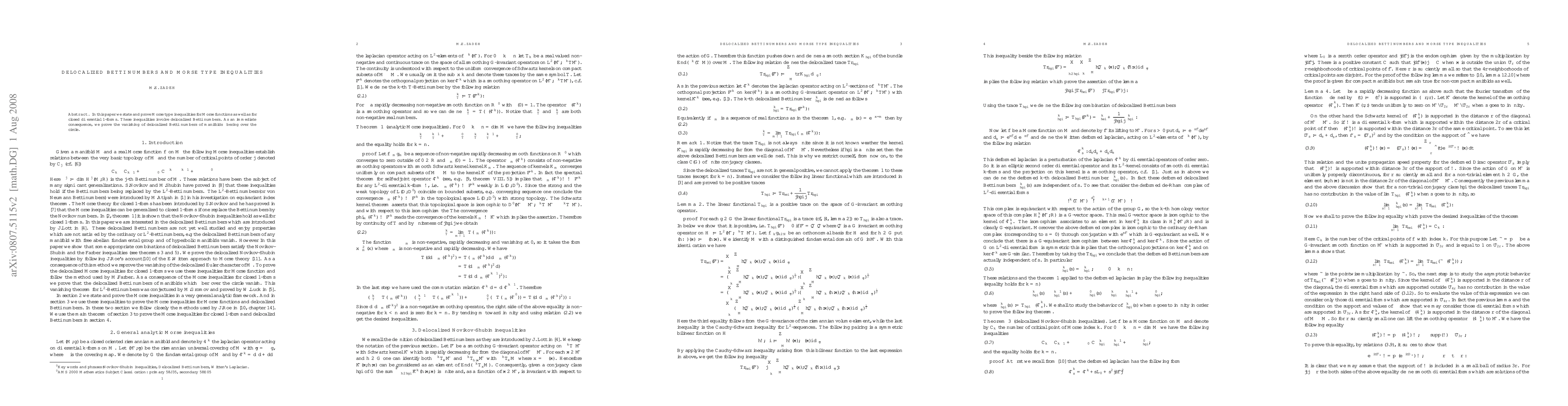 The paper establishes Morse type inequalities for Morse functions and closed differential 1-forms using delocalized Betti numbers, demonstrating the vanishing of these numbers for manifolds that fiber over the circle.