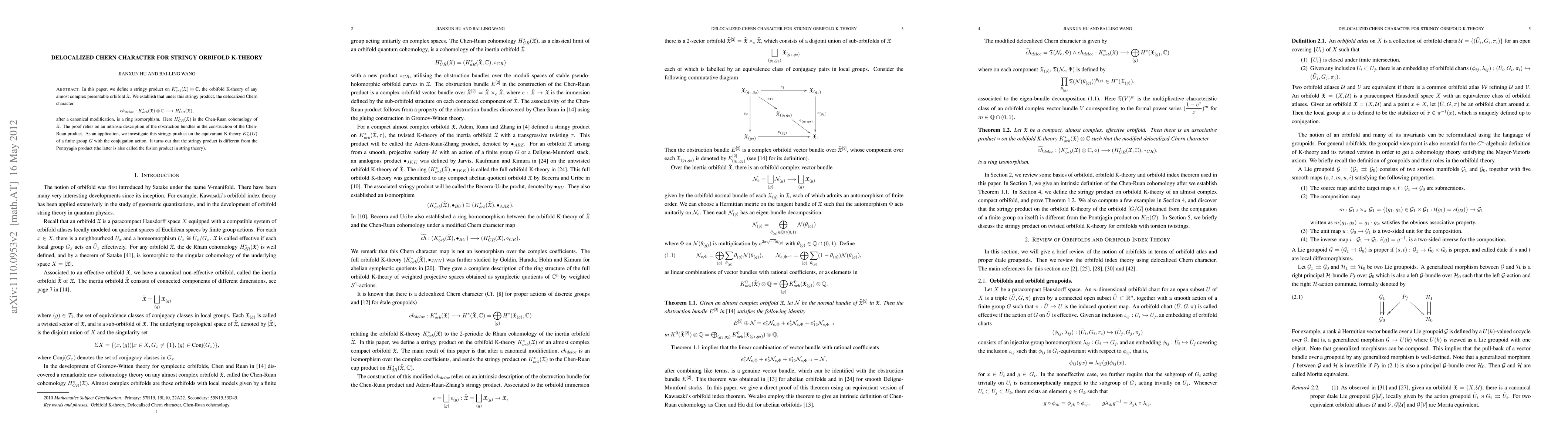 The paper introduces a stringy product on orbifold K-theory, proving that the delocalized Chern character is an isomorphism to Chen-Ruan cohomology. It demonstrates the product's distinction from the Pontryagin product in equivariant K-theory for finite groups.