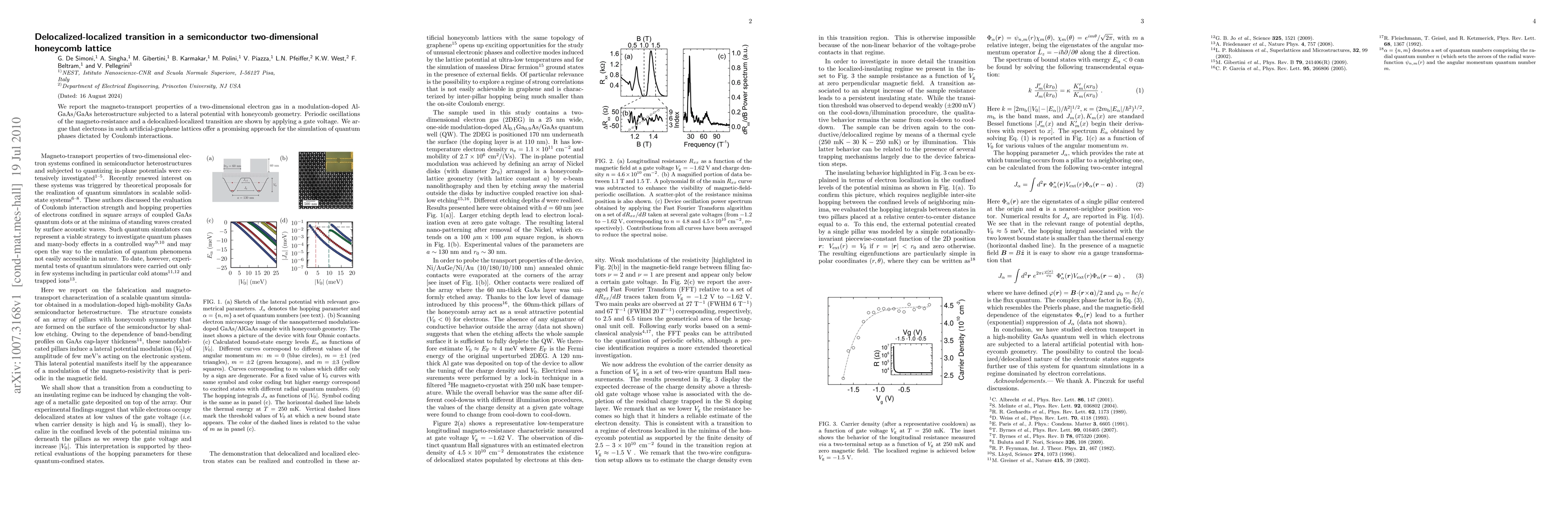 We report the magneto-transport properties of a two-dimensional electron gas in a modulation-doped AlGaAs/GaAs heterostructure subjected to a lateral potential with honeycomb geometry. Periodic oscillations of the magneto-resistance and a delocalized-localized transition are shown by applying a gate voltage. We argue that electrons in such artificial-graphene lattices offer a promising approach for the simulation of quantum phases dictated by Coulomb interactions.