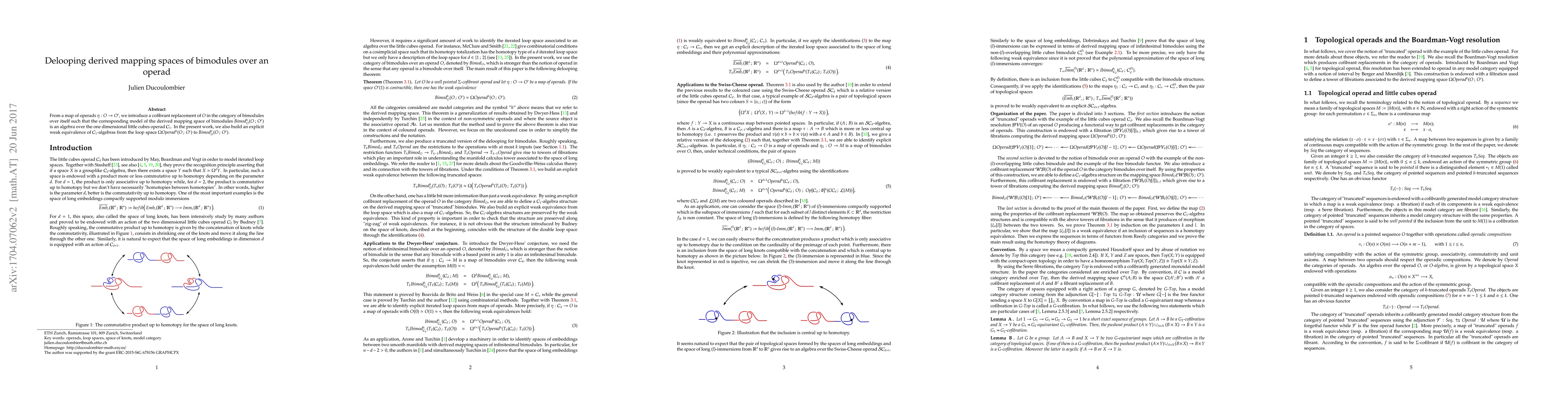 This paper constructs a cofibrant replacement for an operad $O$ in the category of bimodules over itself, resulting in a derived mapping space model that is an algebra over the one-dimensional little cubes operad $\mathcal{C}_{1}$. It also establishes a weak equivalence between the loop space of the derived mapping space and the $\mathcal{C}_{1}$-algebra of bimodules.
