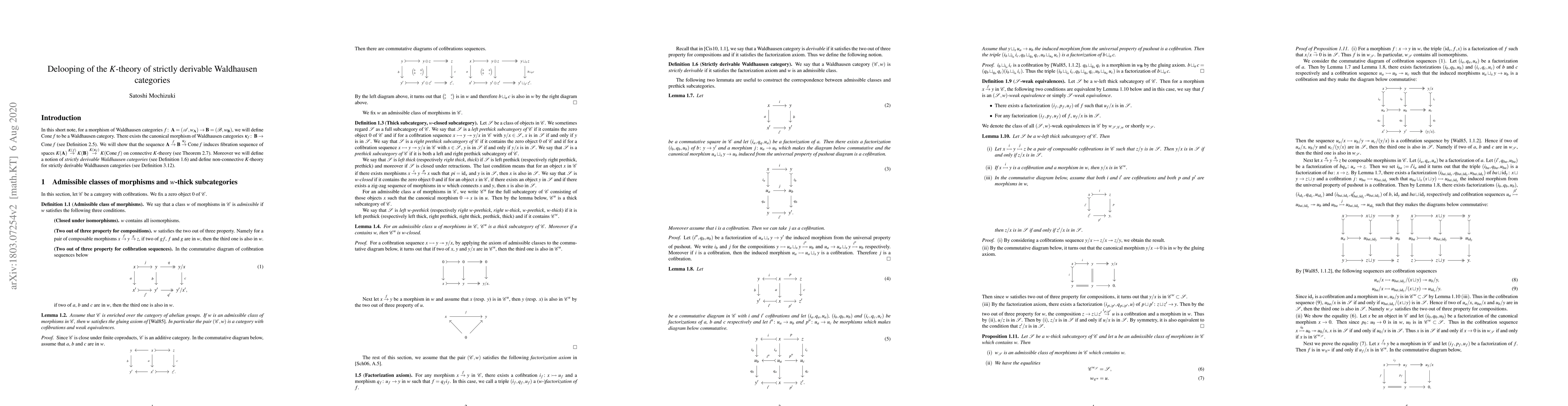 In this short note, for a morphism of Waldhausen categories $f\colon \mathbb{A} = (\mathcal{A} ,w_{\mathbb{A}}) \to \mathbb{B} = (\mathcal{B},w_{\mathbb{B}})$, we will define $\operatorname{Cone} f$ to be a Waldhausen category. There exists the canonical morphism of Waldhausen categories $\kappa_f\colon \mathbb{B}\to \operatorname{Cone} f$. We will show that the sequence $\mathbb{A}\overset{f}{\to}\mathbb{B}\overset{\kappa_f}{\to}\operatorname{Cone}f$ induces fibration sequence of spaces $K(\mathbb{A})\overset{K(f)}{\to}K(\mathbb{B})\overset{K(\kappa_f)}{\to} K(\operatorname{Cone} f)$ on connective $K$-theory. Moreover we will define a notion of strictly derivable Waldhausen categories and define non-connective $K$-theory for strictly derivable Waldhausen categories.