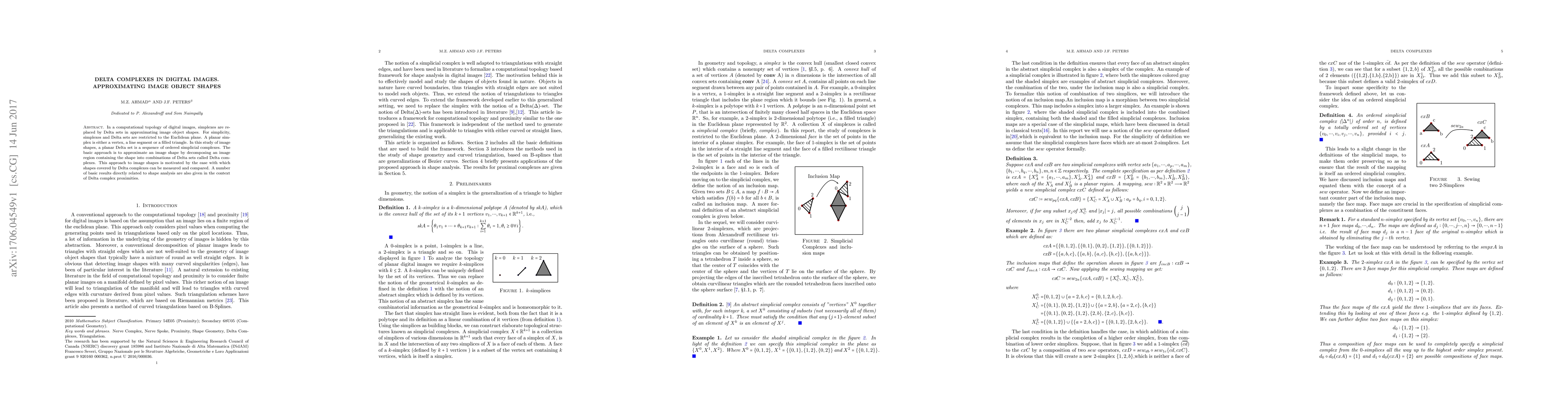 In a computational topology of digital images, simplexes are replaced by Delta sets in approximating image object shapes. For simplicity, simplexes and Delta sets are restricted to the Euclidean plane. A planar simplex is either a vertex, a line segment or a filled triangle. In this study of image shapes, a planar Delta set is a sequence of ordered simplicial complexes. The basic approach is to approximate an image shape by decomposing an image region containing the shape into combinations of Delta sets called Delta complexes. This approach to image shapes is motivated by the ease with which shapes covered by Delta complexes can be measured and compared. A number of basic results directly related to shape analysis are also given in the context of Delta complex proximities.