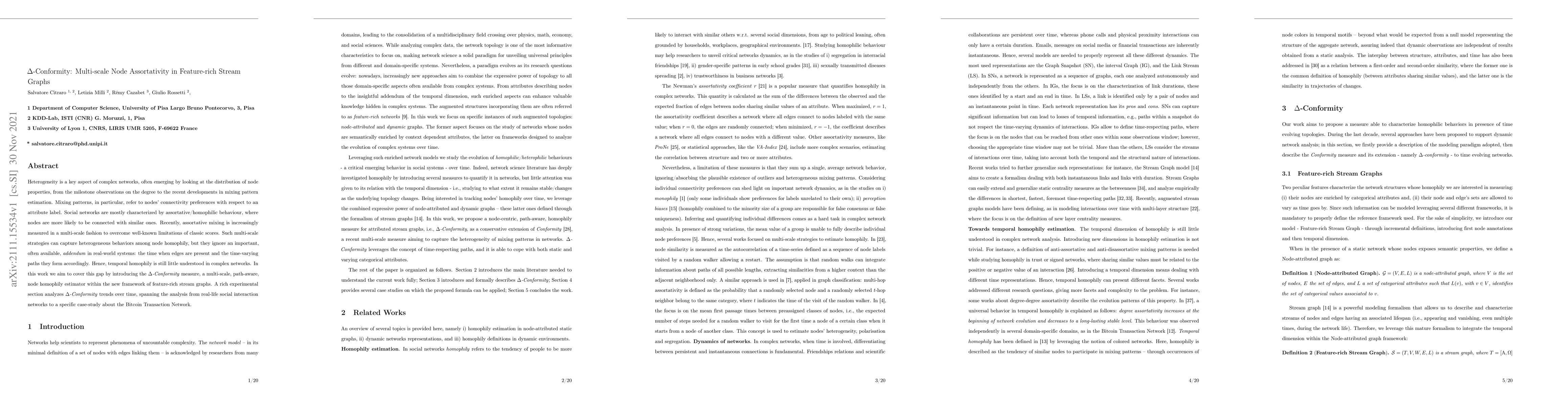 Heterogeneity is a key aspect of complex networks, often emerging by looking at the distribution of node properties, from the milestone observations on the degree to the recent developments in mixing pattern estimation. Mixing patterns, in particular, refer to nodes' connectivity preferences with respect to an attribute label. Social networks are mostly characterized by assortative/homophilic behaviour, where nodes are more likely to be connected with similar ones. Recently, assortative mixing is increasingly measured in a multi-scale fashion to overcome well known limitations of classic scores. Such multi-scale strategies can capture heterogeneous behaviors among node homophily, but they ignore an important, often available, addendum in real-world systems: the time when edges are present and the time-varying paths they form accordingly. Hence, temporal homophily is still little understood in complex networks. In this work we aim to cover this gap by introducing the {\Delta}-Conformity measure, a multiscale, path-aware, node homophily estimator within the new framework of feature-rich stream graphs. A rich experimental section analyzes {\Delta}-Conformity trends over time, spanning the analysis from real-life social interaction networks to a specific case-study about the Bitcoin Transaction Network.
