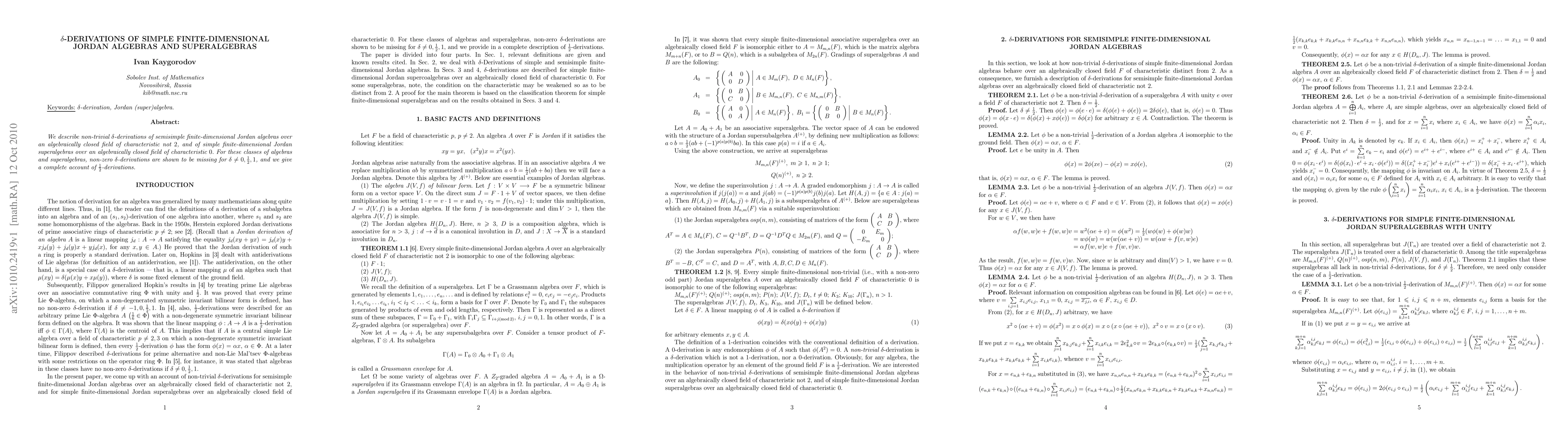 Summary: This paper investigates $\delta$-derivations for semisimple Jordan algebras and simple Jordan superalgebras, concluding that non-zero $\delta$-derivations are absent for $\delta \neq 0, \frac{1}{2}, 1$, with a detailed examination of $\frac{1}{2}$-derivations.