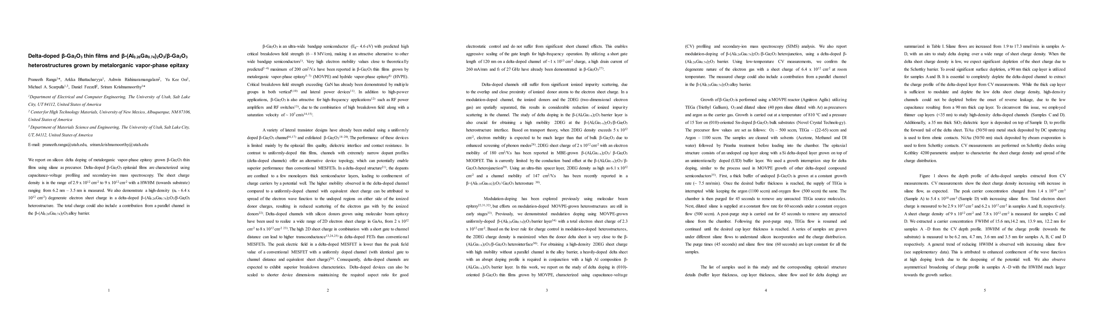 This paper reports on the silicon delta doping of metalorganic vapor-phase epitaxy-grown β-Ga2O3 thin films, achieving electron sheet charge densities up to 8e12 cm-2. Additionally, a high-density degenerate two-dimensional electron gas of 6.4e12 cm-2 is demonstrated in a β-(Al0.26Ga0.74)2O3/β-Ga2O3 heterostructure.