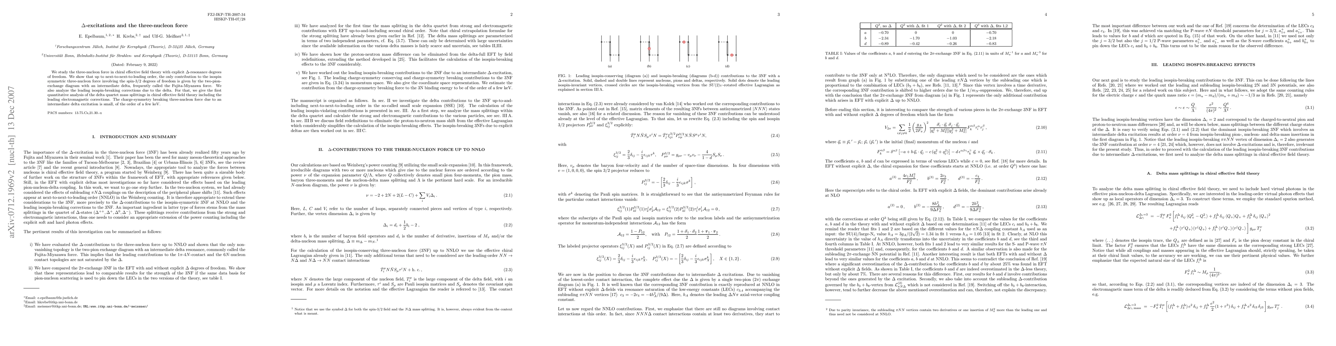 This paper investigates the three-nucleon force in chiral effective field theory, focusing on Delta-resonance contributions. It finds that the Fujita-Miyazawa force, a two-pion-exchange diagram with an intermediate delta, is the primary isospin symmetric three-nucleon force up to next-to-next-to-leading order. Additionally, it analyzes the small charge-symmetry breaking effects due to delta excitations, which are on the order of a few keV.