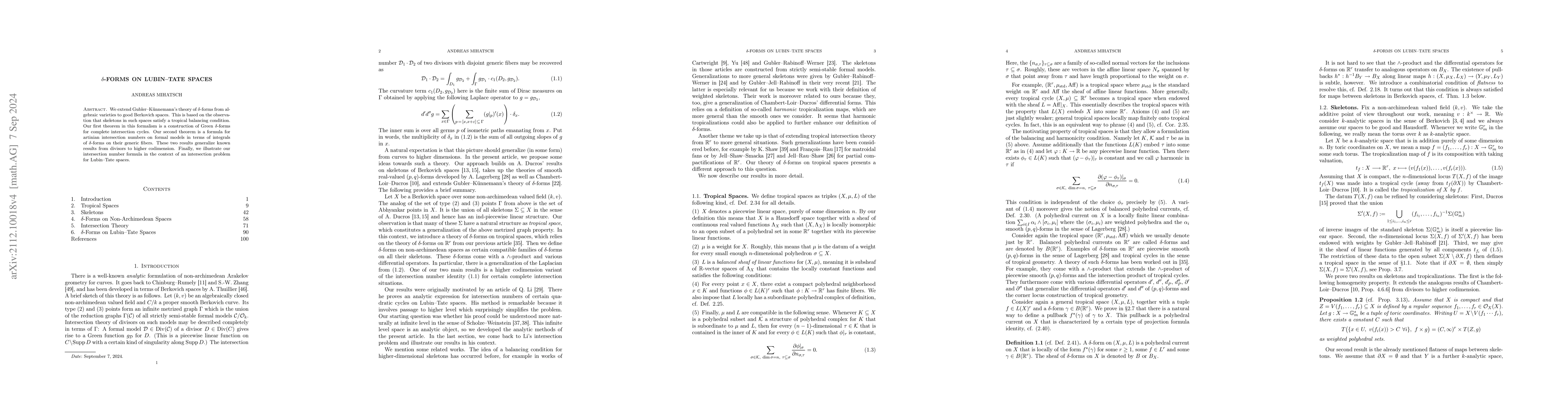 This paper extends the theory of $\delta$-forms from algebraic varieties to good Berkovich spaces, demonstrating that complete intersection formal models yield Green $\delta$-forms for their generic fibers. The authors also show that intersection numbers on formal models can be computed using the $\star$-product of Green currents, generalizing results for divisor intersection to higher codimension scenarios, and applying these findings to intersection problems in Lubin--Tate spaces.