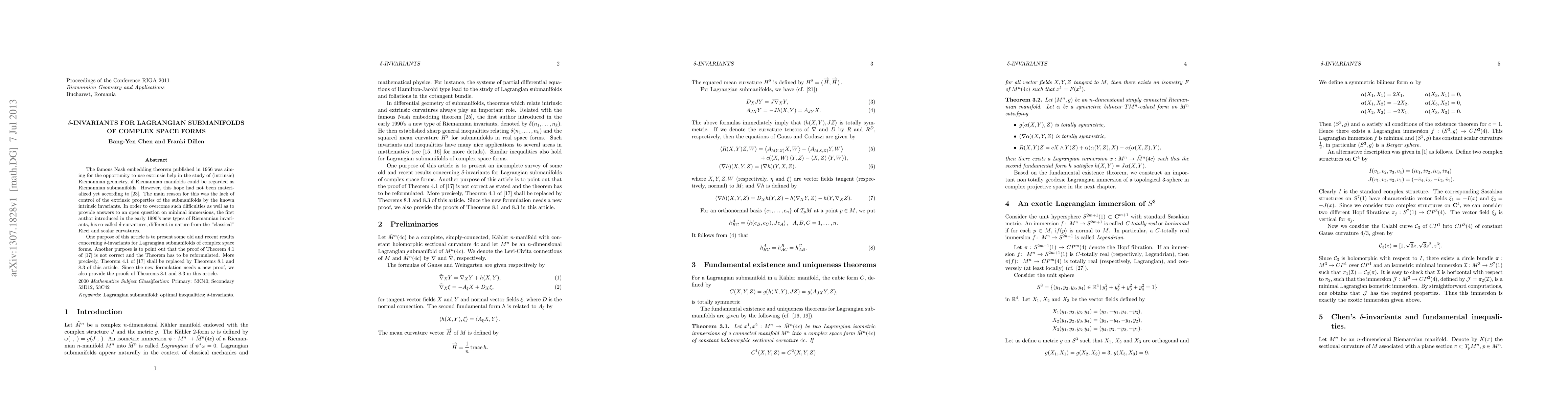 This paper explores $\delta$-invariants, a novel type of Riemannian invariant introduced to address limitations in controlling extrinsic properties of submanifolds, focusing on Lagrangian submanifolds within complex space forms. It presents both historical and recent findings on these $\delta$-curvatures, aiming to advance the study of minimal immersions.