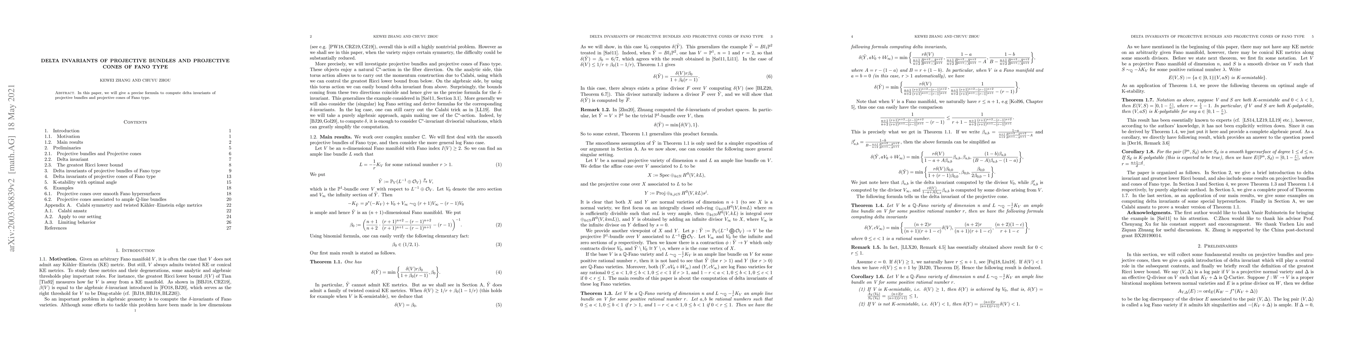 This paper provides a formula for calculating delta invariants, which are crucial in understanding the geometry of projective bundles and cones of Fano type. The precise computation method facilitates deeper insights into these geometric structures.