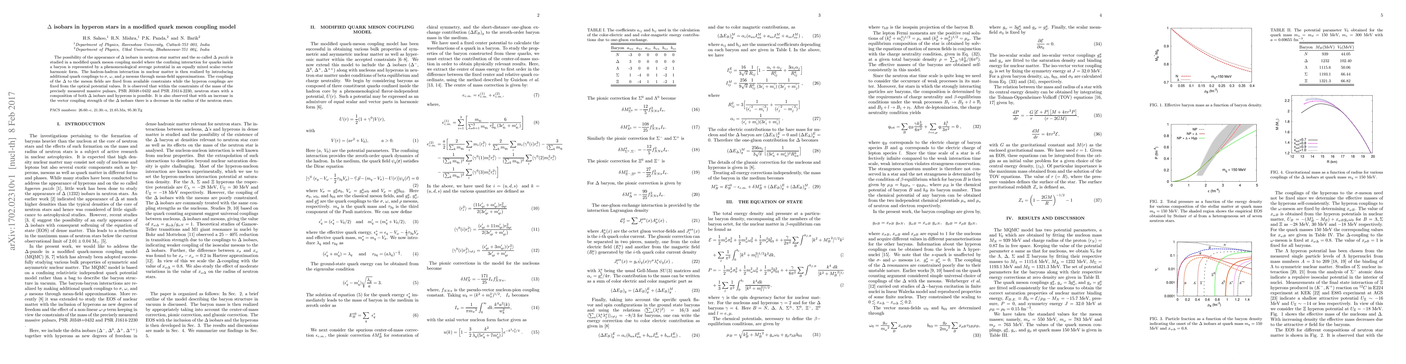 Research finds that neutron stars with a composition of both isobars and hyperons are possible within constraints of massive pulsar masses, and increasing vector coupling strength reduces star radius.