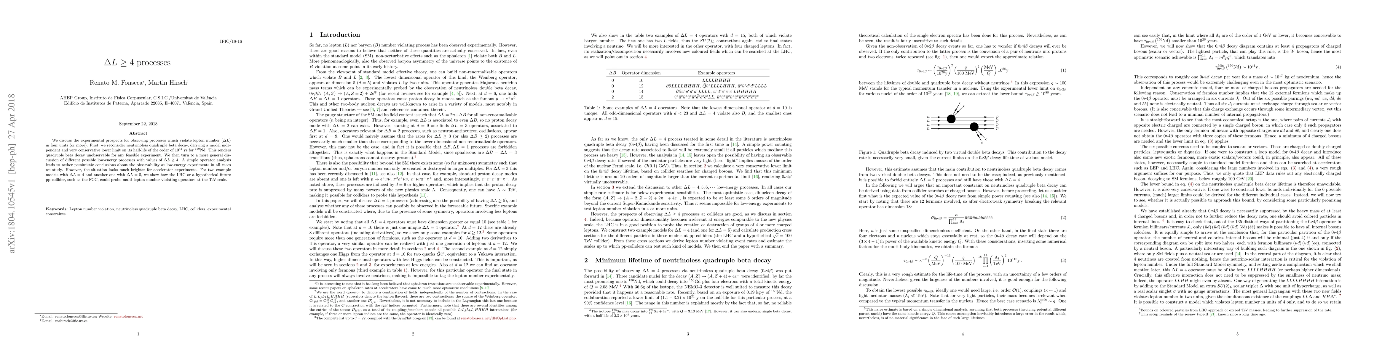 Researchers conclude that processes violating lepton number (ΔL) in four units or more are unobservable for feasible experiments due to extremely long half-lives, but accelerator experiments like LHC could probe ΔL=4 and ΔL=5 at the TeV scale.