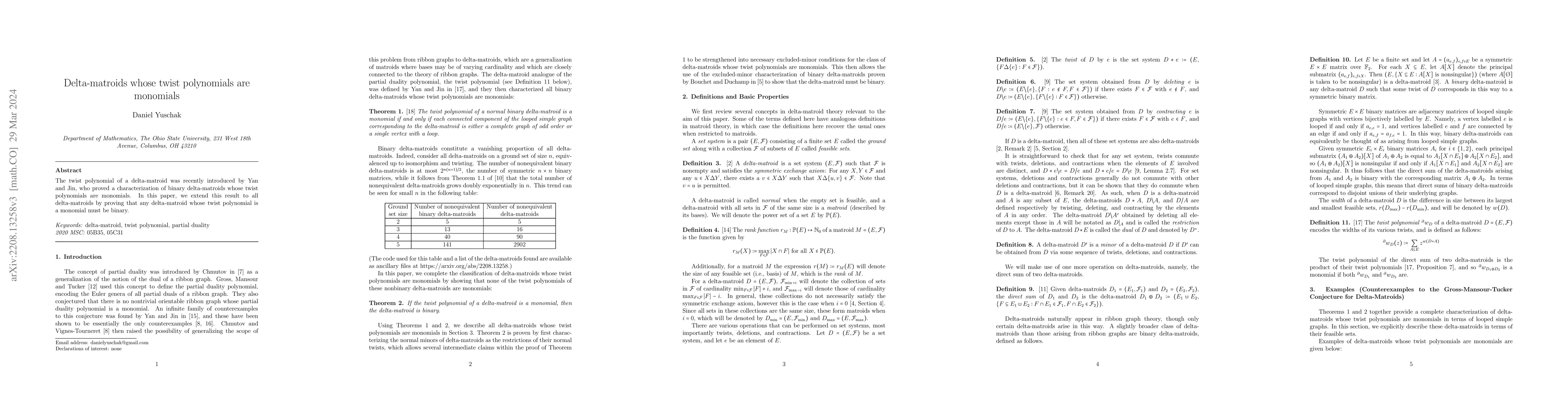 This paper extends the characterization of binary delta-matroids with twist monomials to all delta-matroids, proving that any delta-matroid with a twist monomial is necessarily binary.