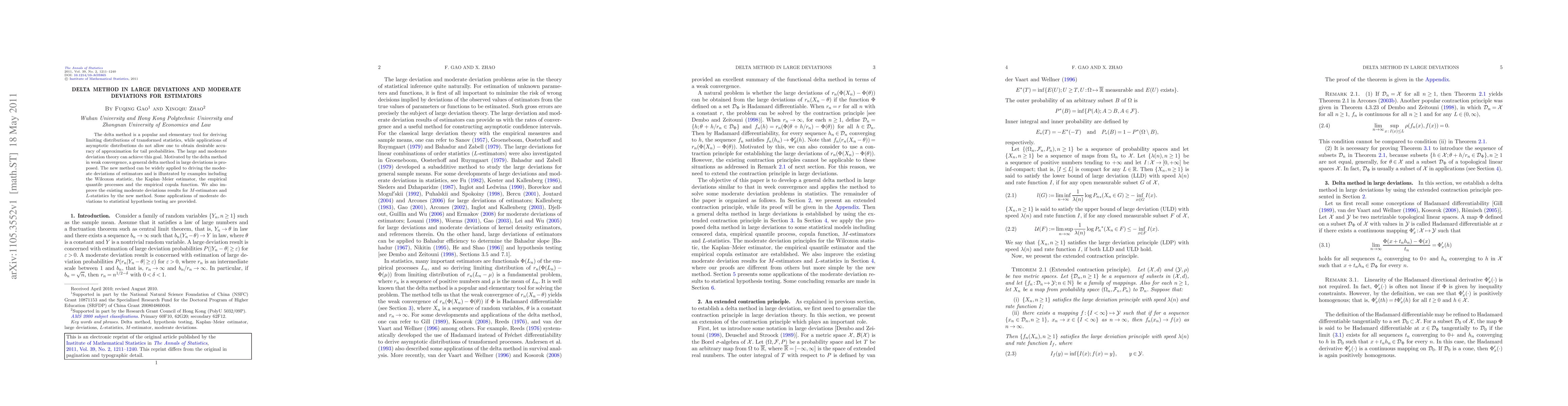 The paper proposes a new delta method for large and moderate deviations to achieve better accuracy in tail probabilities compared to traditional asymptotic methods. It applies this method to various estimators and improves existing moderate deviations results for $M$-estimators and $L$-statistics, with applications to statistical hypothesis testing.