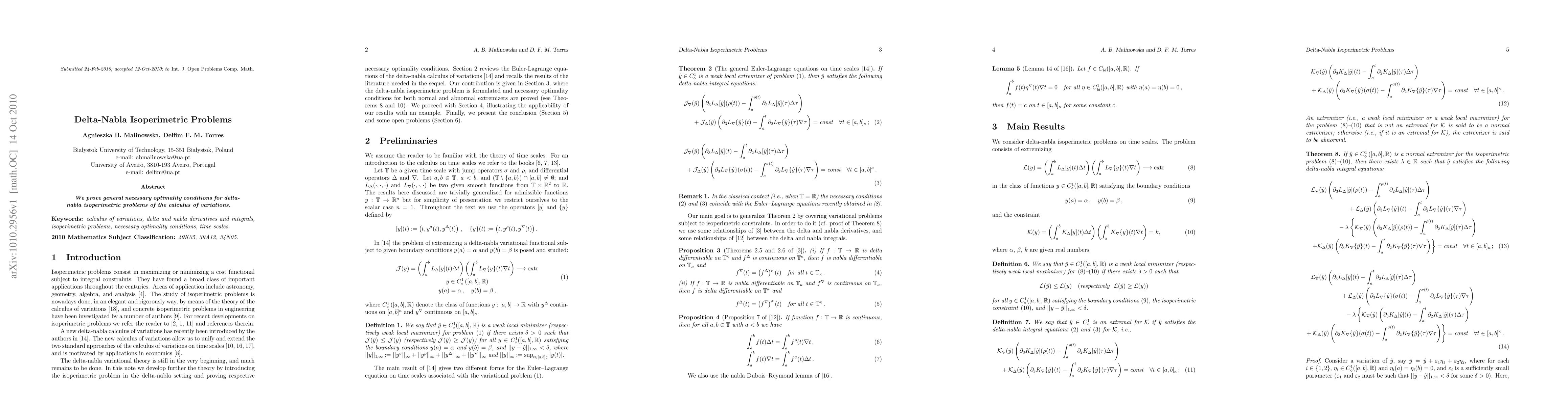 Summary: This paper establishes necessary optimality conditions for delta-nabla isoperimetric problems in the calculus of variations, providing a comprehensive framework for understanding these mathematical optimization challenges.