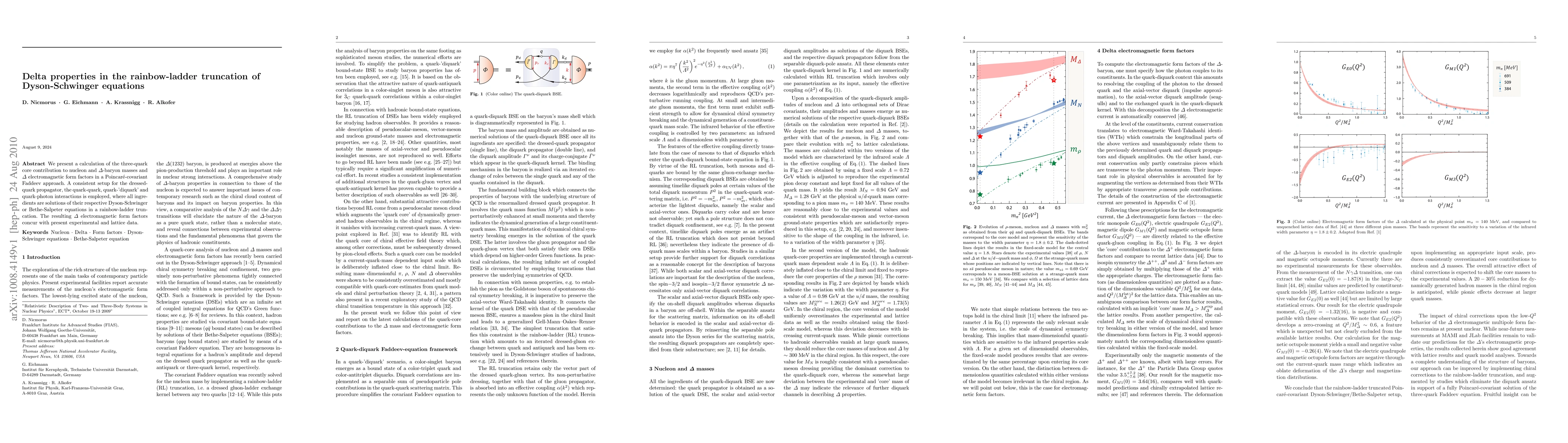 We present a calculation of the three-quark core contribution to nucleon and Delta-baryon masses and Delta electromagnetic form factors in a Poincare-covariant Faddeev approach. A consistent setup for the dressed-quark propagator, the quark-quark, quark-'diquark' and quark-photon interactions is employed, where all ingredients are solutions of their respective Dyson-Schwinger or Bethe-Salpeter equations in a rainbow-ladder truncation. The resulting Delta electromagnetic form factors concur with present experimental and lattice data.