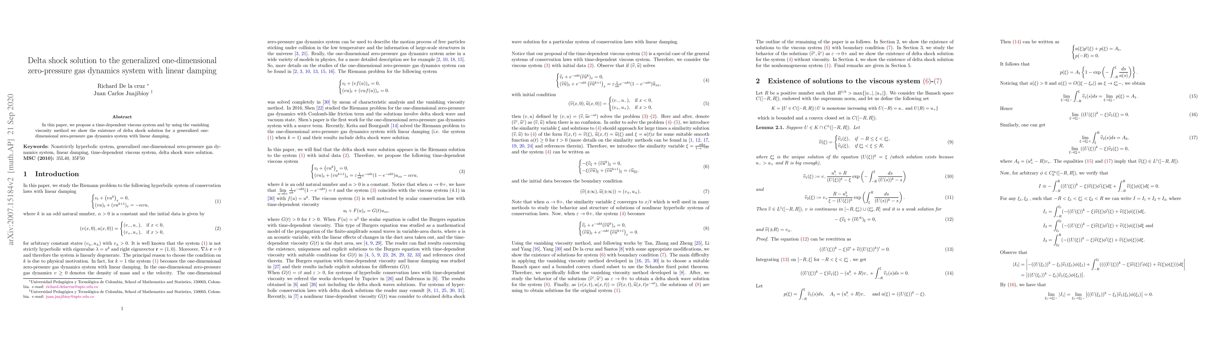 In this paper, we propose a time-dependent viscous system and by using the vanishing viscosity method we show the existence of delta shock solution for a particular $2 \times 2$ system of conservation laws with linear damping.
