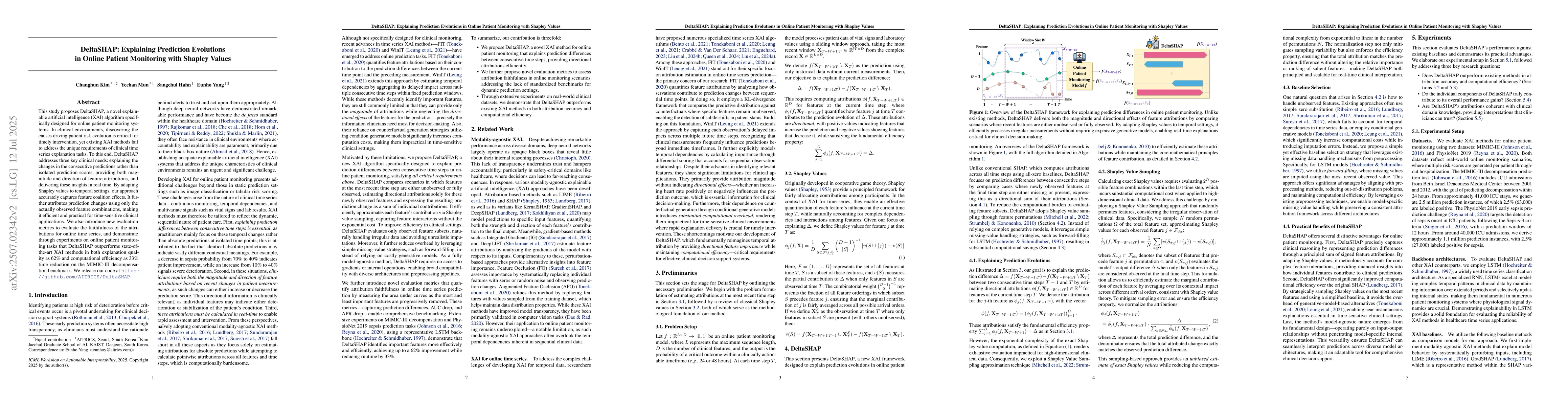 DeltaSHAP is a new AI algorithm for online patient monitoring, explaining how patient risk changes over time using Shapley values. It outperforms existing methods by accurately capturing feature impacts, providing real-time insights, and reducing computational time by 33%.