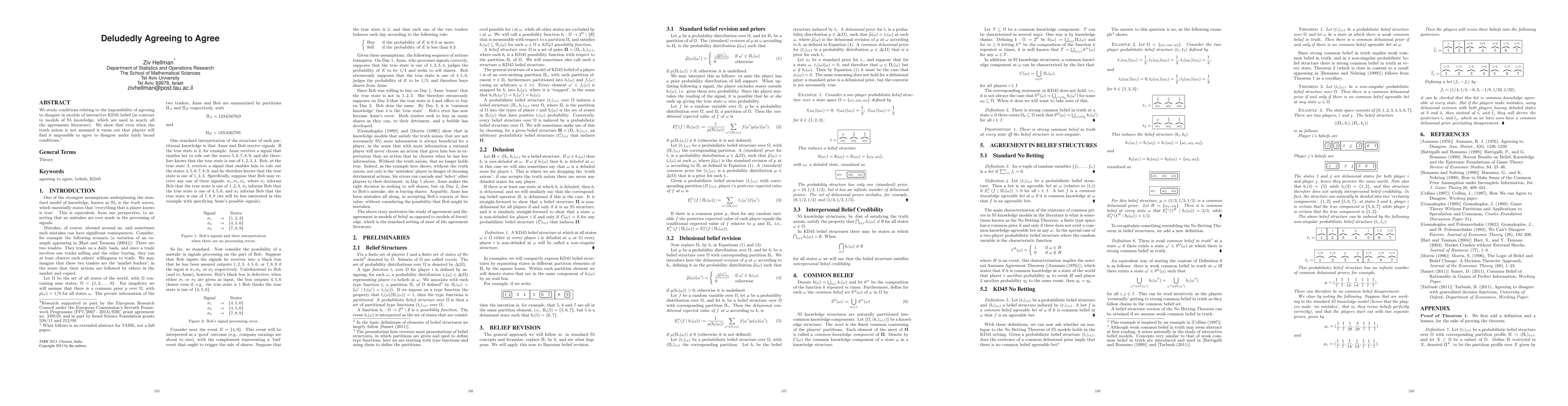 This paper investigates the impossibility of "agreeing to disagree" in interactive KD45 belief models, demonstrating that players cannot reach such agreements under broad conditions, even without assuming the truth axiom, contrasting with the S5 knowledge models prevalent in the agreements literature.