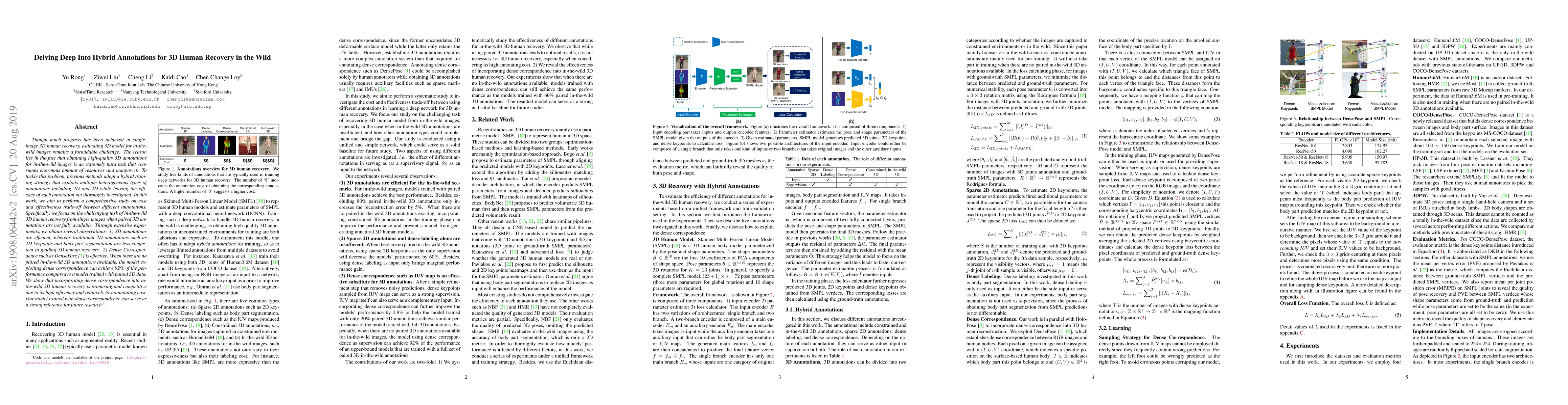 Though much progress has been achieved in single-image 3D human recovery, estimating 3D model for in-the-wild images remains a formidable challenge. The reason lies in the fact that obtaining high-quality 3D annotations for in-the-wild images is an extremely hard task that consumes enormous amount of resources and manpower. To tackle this problem, previous methods adopt a hybrid training strategy that exploits multiple heterogeneous types of annotations including 3D and 2D while leaving the efficacy of each annotation not thoroughly investigated. In this work, we aim to perform a comprehensive study on cost and effectiveness trade-off between different annotations. Specifically, we focus on the challenging task of in-the-wild 3D human recovery from single images when paired 3D annotations are not fully available. Through extensive experiments, we obtain several observations: 1) 3D annotations are efficient, whereas traditional 2D annotations such as 2D keypoints and body part segmentation are less competent in guiding 3D human recovery. 2) Dense Correspondence such as DensePose is effective. When there are no paired in-the-wild 3D annotations available, the model exploiting dense correspondence can achieve 92% of the performance compared to a model trained with paired 3D data. We show that incorporating dense correspondence into in-the-wild 3D human recovery is promising and competitive due to its high efficiency and relatively low annotating cost. Our model trained with dense correspondence can serve as a strong reference for future research.