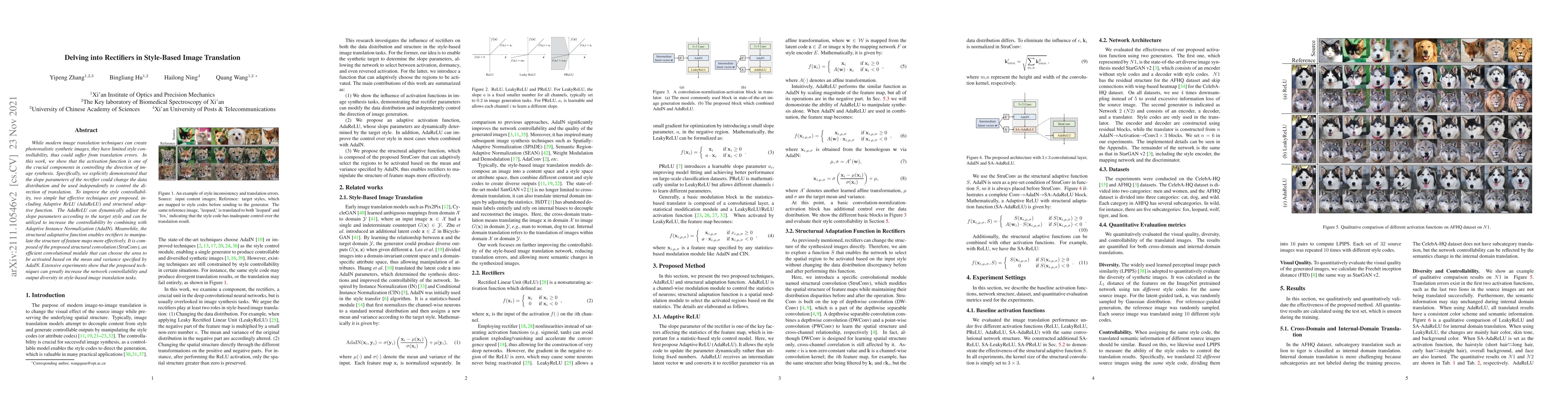 While modern image translation techniques can create photorealistic synthetic images, they have limited style controllability, thus could suffer from translation errors. In this work, we show that the activation function is one of the crucial components in controlling the direction of image synthesis. Specifically, we explicitly demonstrated that the slope parameters of the rectifier could change the data distribution and be used independently to control the direction of translation. To improve the style controllability, two simple but effective techniques are proposed, including Adaptive ReLU (AdaReLU) and structural adaptive function. The AdaReLU can dynamically adjust the slope parameters according to the target style and can be utilized to increase the controllability by combining with Adaptive Instance Normalization (AdaIN). Meanwhile, the structural adaptative function enables rectifiers to manipulate the structure of feature maps more effectively. It is composed of the proposed structural convolution (StruConv), an efficient convolutional module that can choose the area to be activated based on the mean and variance specified by AdaIN. Extensive experiments show that the proposed techniques can greatly increase the network controllability and output diversity in style-based image translation tasks.