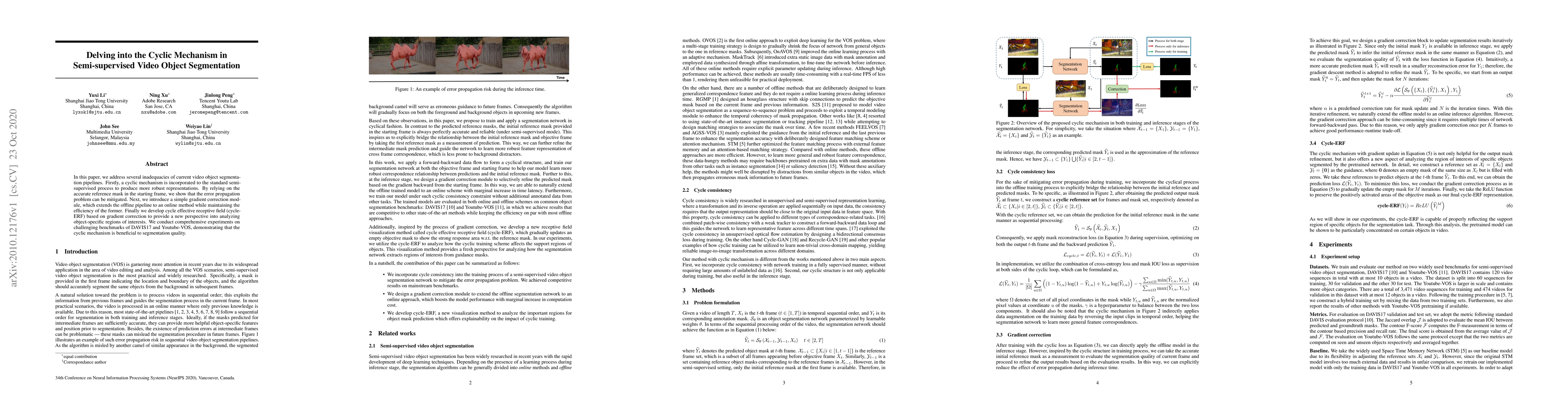 This paper improves semi-supervised video object segmentation by introducing a cyclic mechanism that mitigates error propagation and provides better representations. It also introduces a gradient correction module to extend the offline pipeline to an online method.