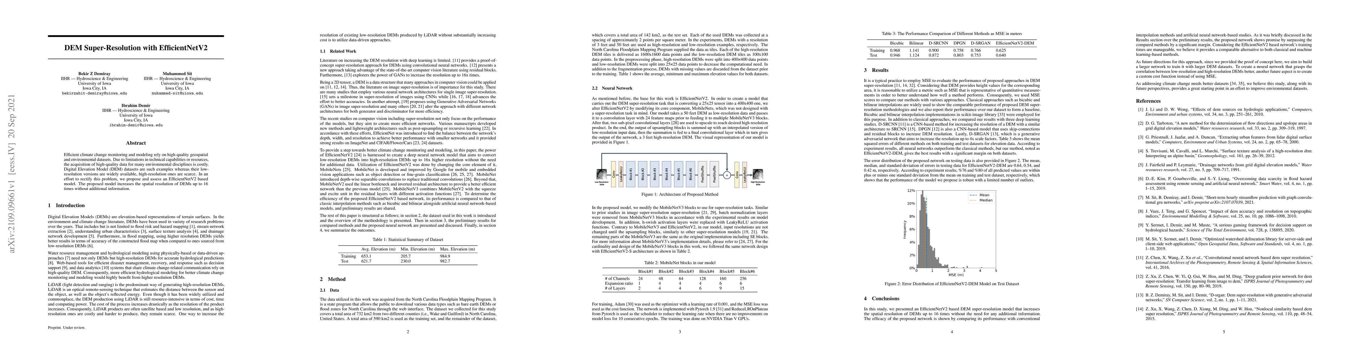 Efficient climate change monitoring and modeling rely on high-quality geospatial and environmental datasets. Due to limitations in technical capabilities or resources, the acquisition of high-quality data for many environmental disciplines is costly. Digital Elevation Model (DEM) datasets are such examples whereas their low-resolution versions are widely available, high-resolution ones are scarce. In an effort to rectify this problem, we propose and assess an EfficientNetV2 based model. The proposed model increases the spatial resolution of DEMs up to 16times without additional information.
