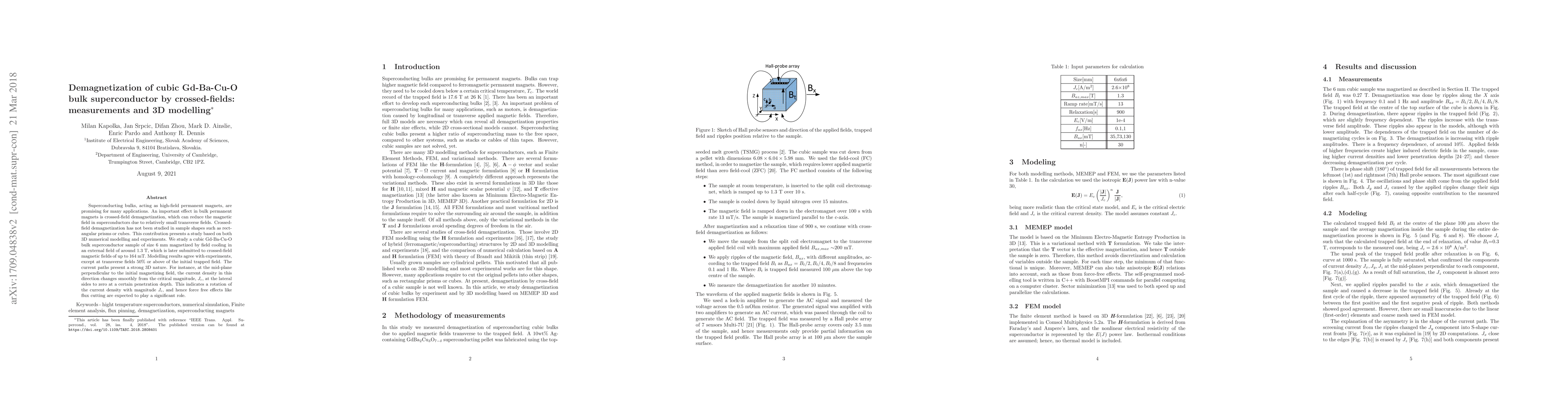 Researchers study how transverse fields affect a cubic Gd-Ba-Cu-O superconductor, finding that at high fields, current paths exhibit complex behavior leading to significant demagnetization.