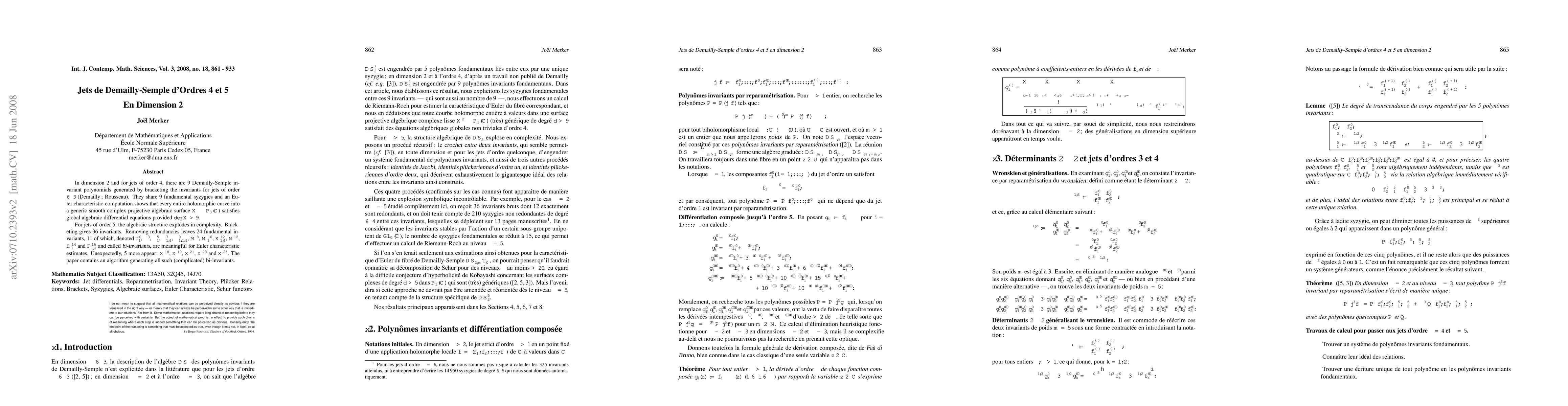 In view of Kobayashi's hyperbolicity conjecture, Demailly-Semple jets of orders 4 and 5 in dimension 2 are studied, some expectations about their algebraic tameness being (dis)proved, after systematic, substantial, formal, manual calculations.