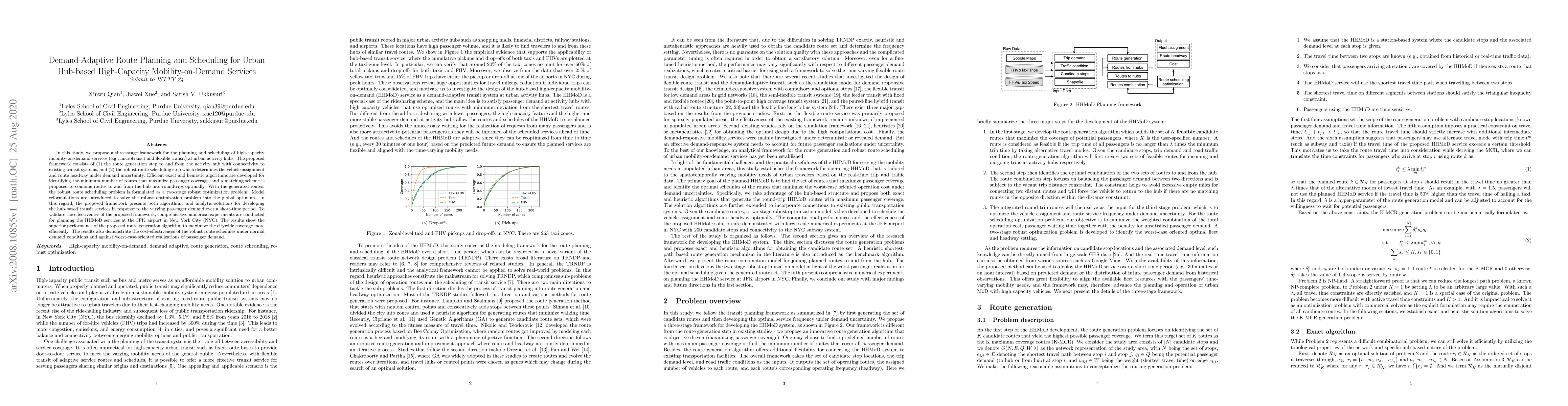 This study proposes a three-stage framework for planning and scheduling high-capacity mobility-on-demand services at urban hubs, utilizing algorithms to maximize passenger coverage and robust scheduling under demand uncertainty. Numerical experiments at JFK airport validate the framework's efficiency and cost-effectiveness.