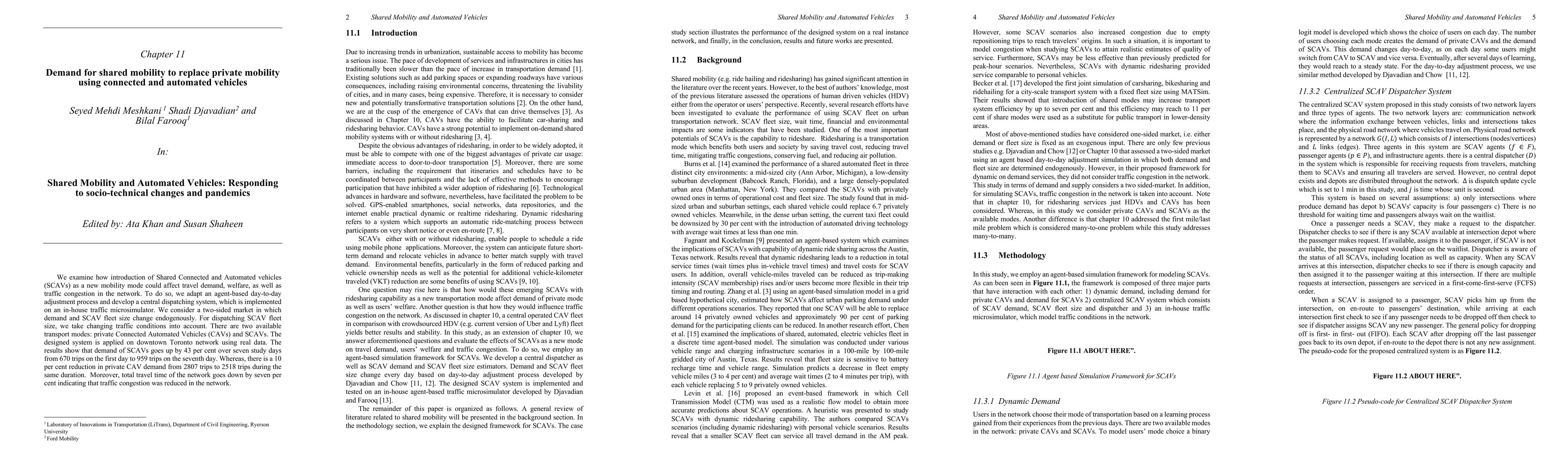 This study explores how shared connected and automated vehicles (SCAVs) can replace private mobility, finding a 43% increase in SCAV demand over seven days in downtown Toronto. The research shows a 10% reduction in private CAV trips and a 7% decrease in total travel time, indicating reduced traffic congestion.