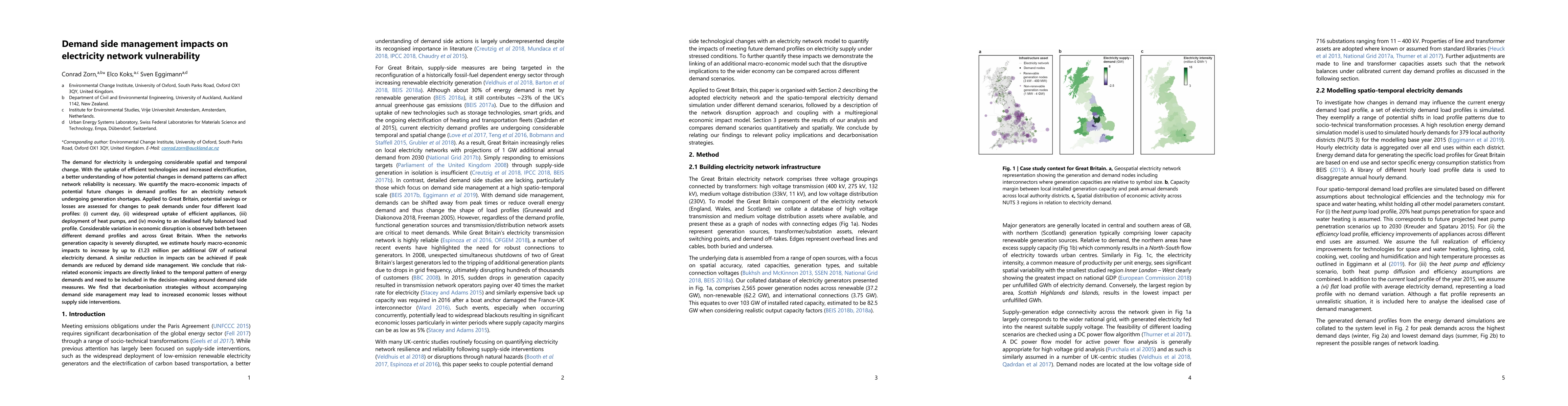 This study quantifies the macro-economic impacts of changes in electricity demand patterns on network vulnerability in Great Britain, finding that demand side management can significantly reduce economic disruption during generation shortages. The research highlights that without such measures, decarbonization strategies could lead to increased economic losses.